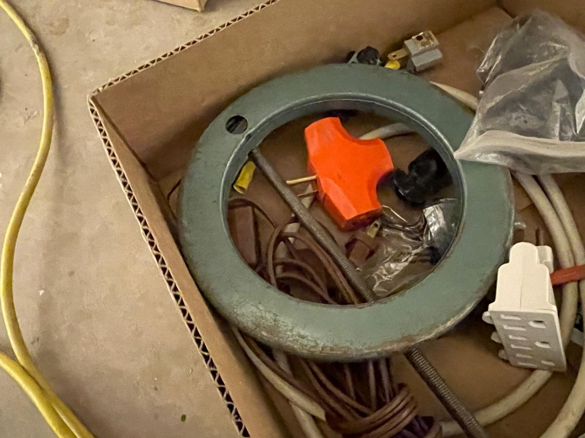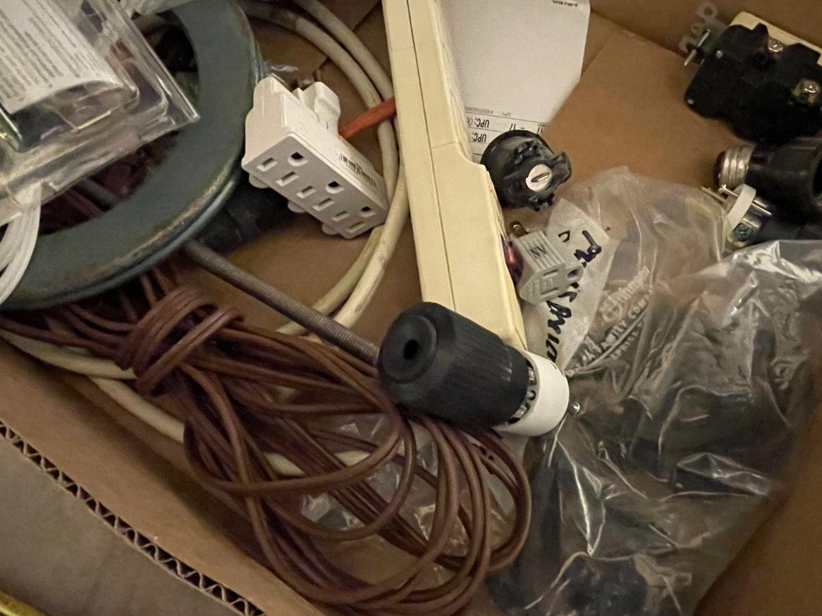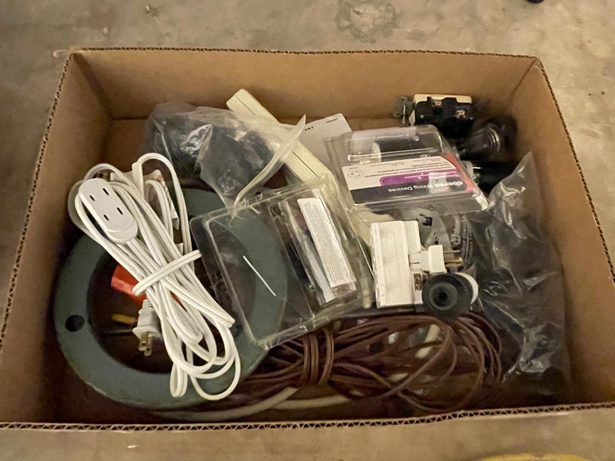 Box of Extension cords/Plug Adapters/Power Strip & More