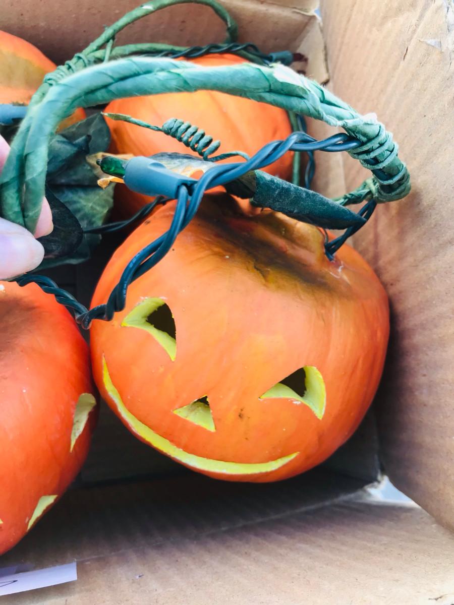 Box of Halloween Pumpkins w/ string ligts