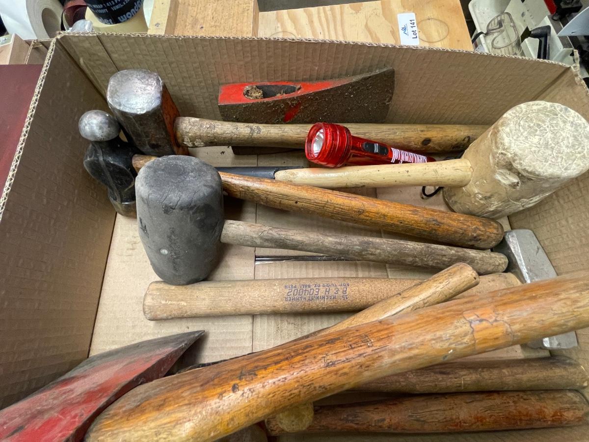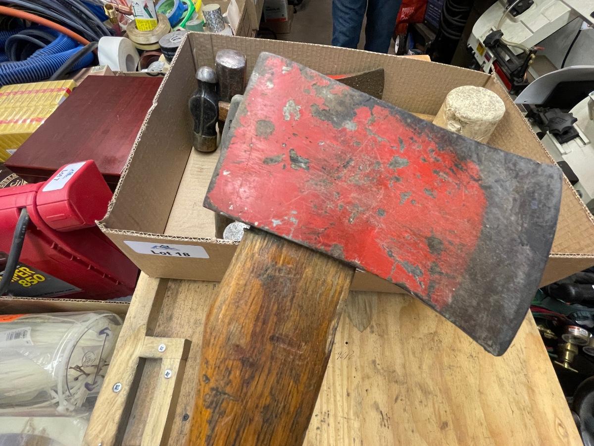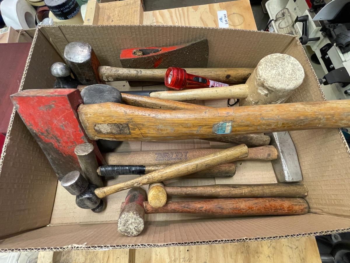 Axe/Hatchet & extra axe blade, flashlight and all hammers & mallets as shown