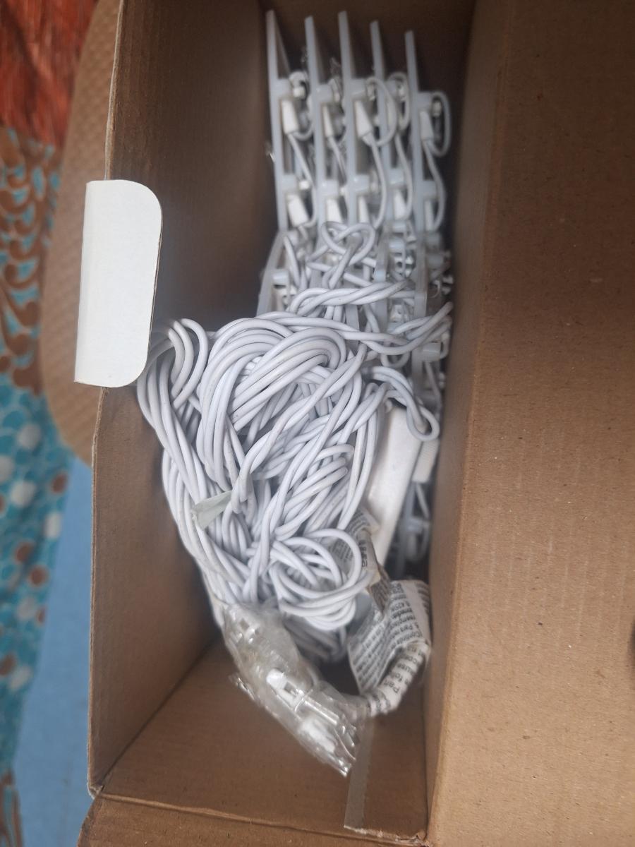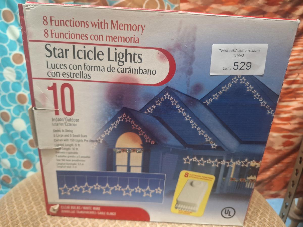 approx. 10 ft long, 8 memory functions, has extra bulbs and look to us to be new.