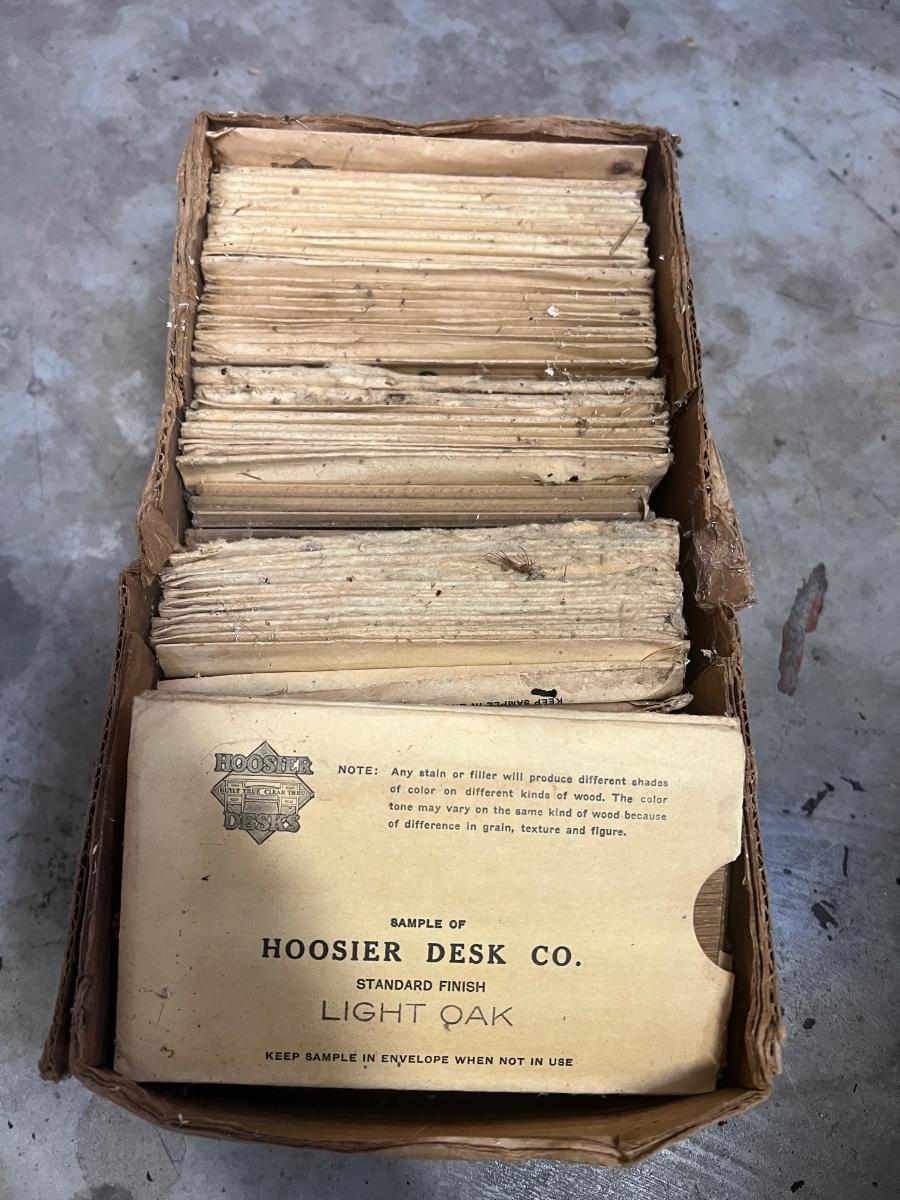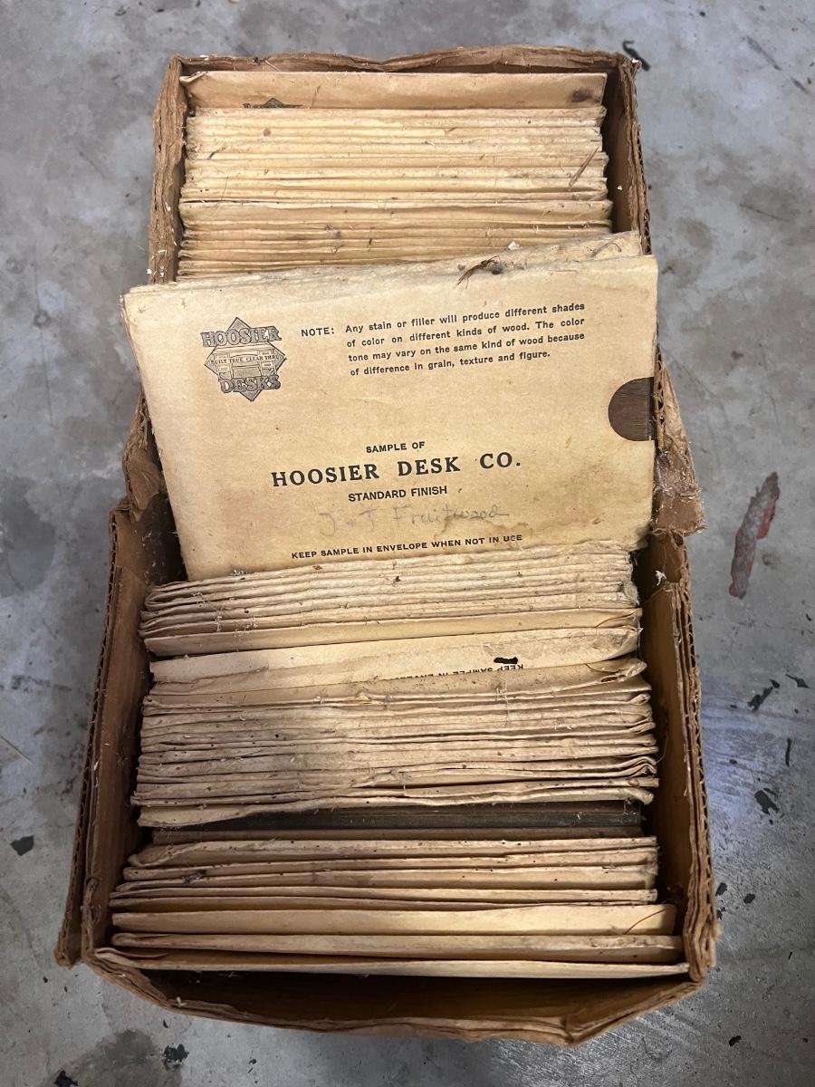 Box of Hoosier Desks Wood Samples