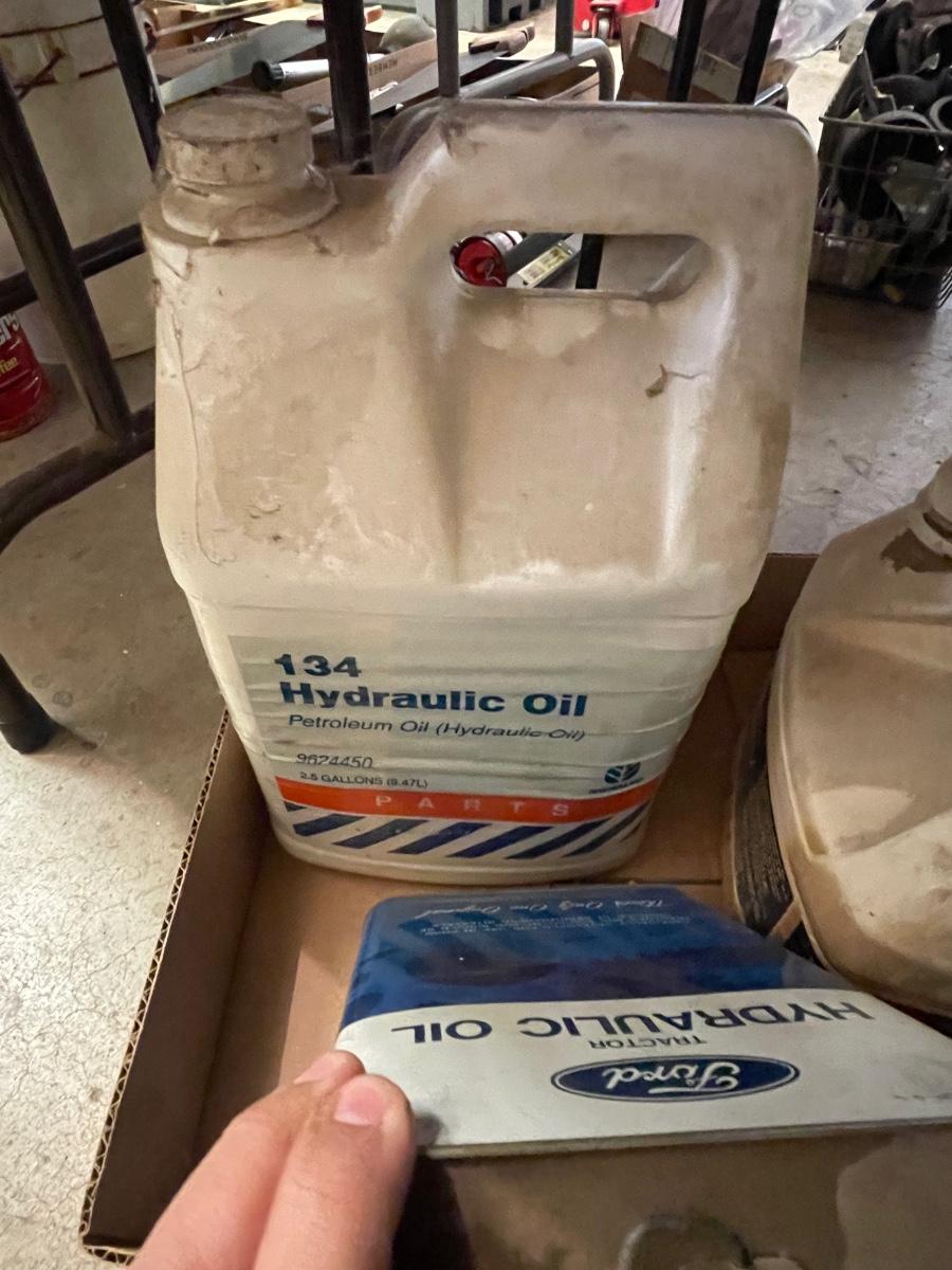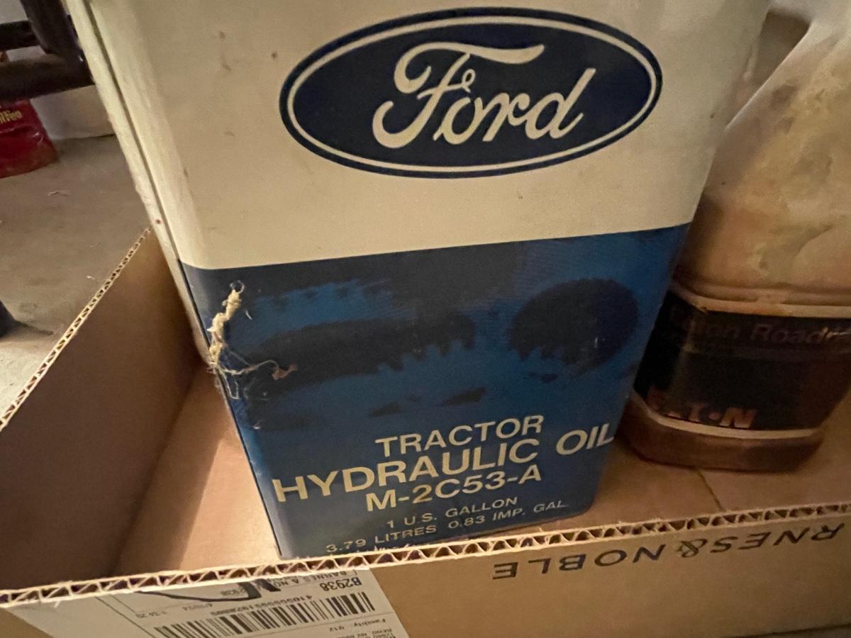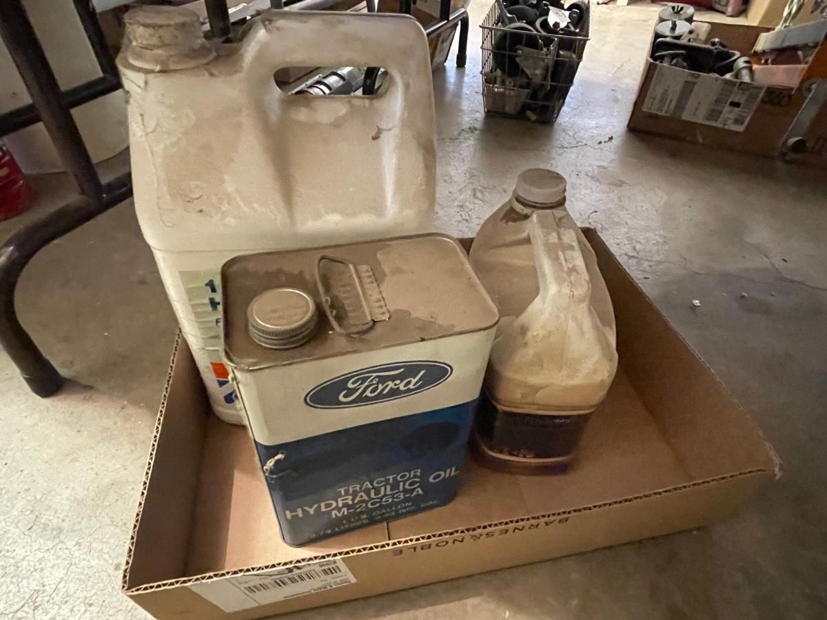 box of 3 different types/sizes of Hydraulic Oil - includes Tracotr Hydraulic Oil from Ford M-2C53-A