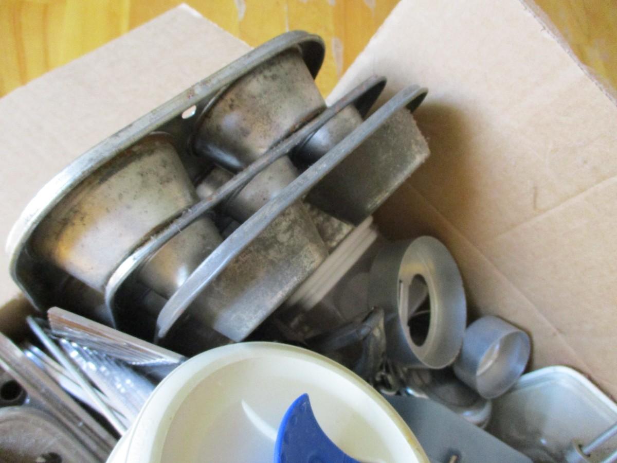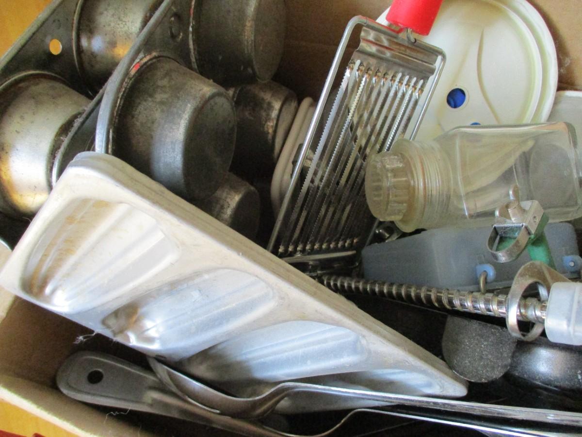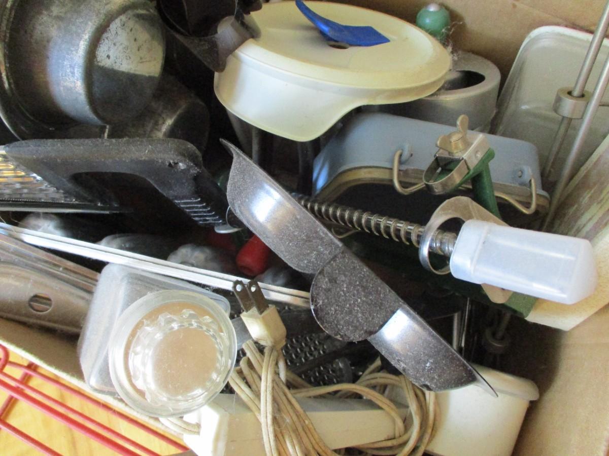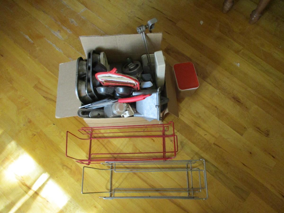 Box Of Kitchen Utensils & Soda Holders