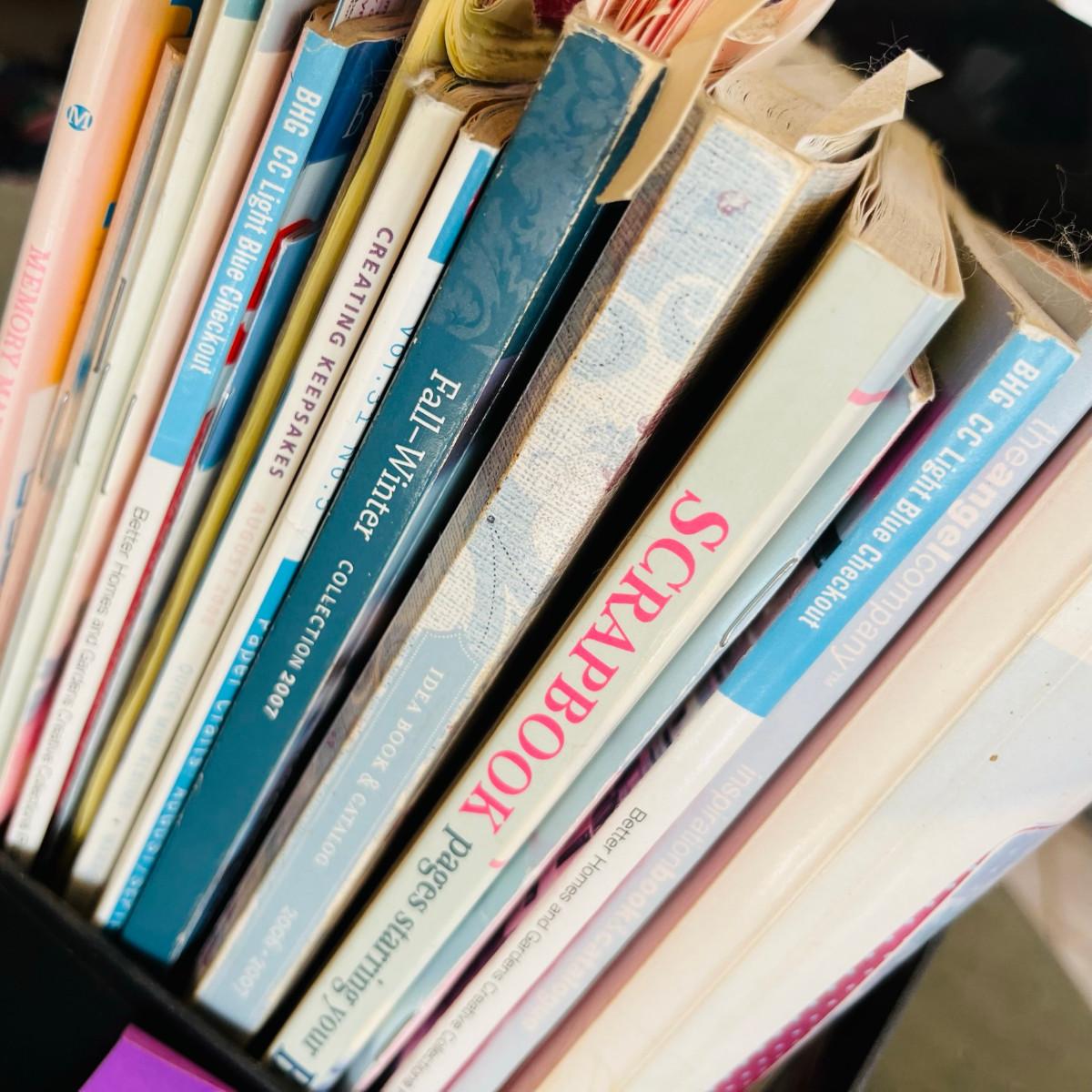 Please take a close look at the titles! We have lots of these racks with booklets & magazines. They are generally on Cake Decorating, Stamping, Sewing, & Scrapbooking!