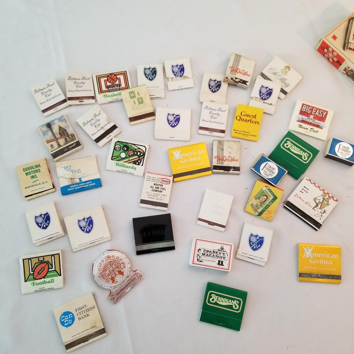 Matches and matchbooks from near and far. Local, national, international places of interest. Many are used but most in fair to good condition. Over a hundred pieces here. Shipping available.