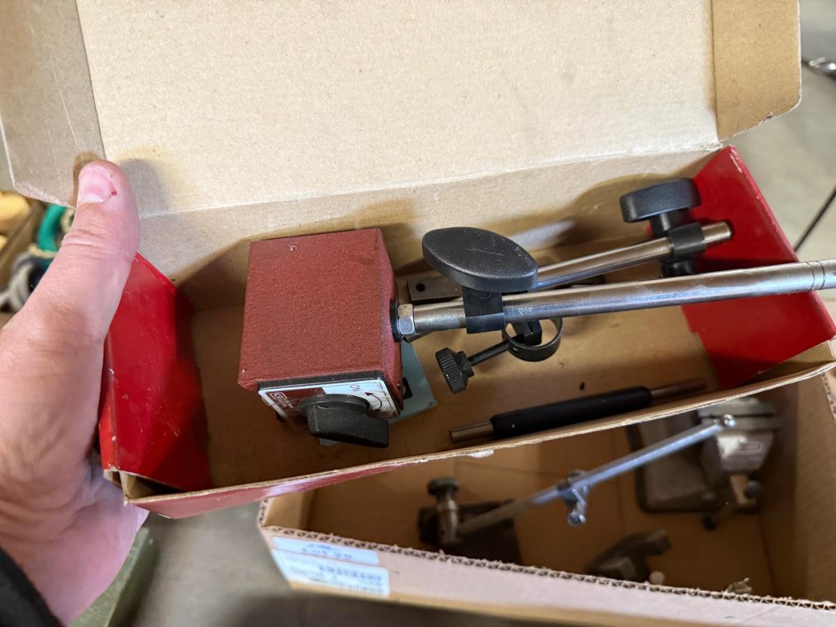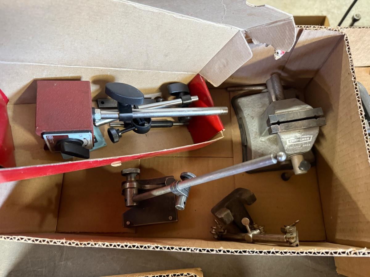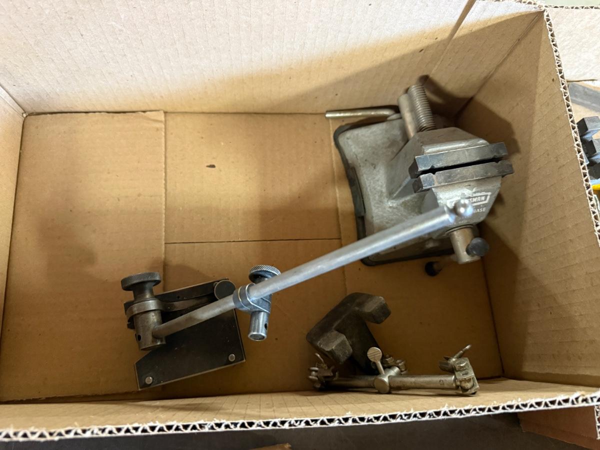 Box of metal Magnetic Indicator Bases/Craftsman small vice as shown