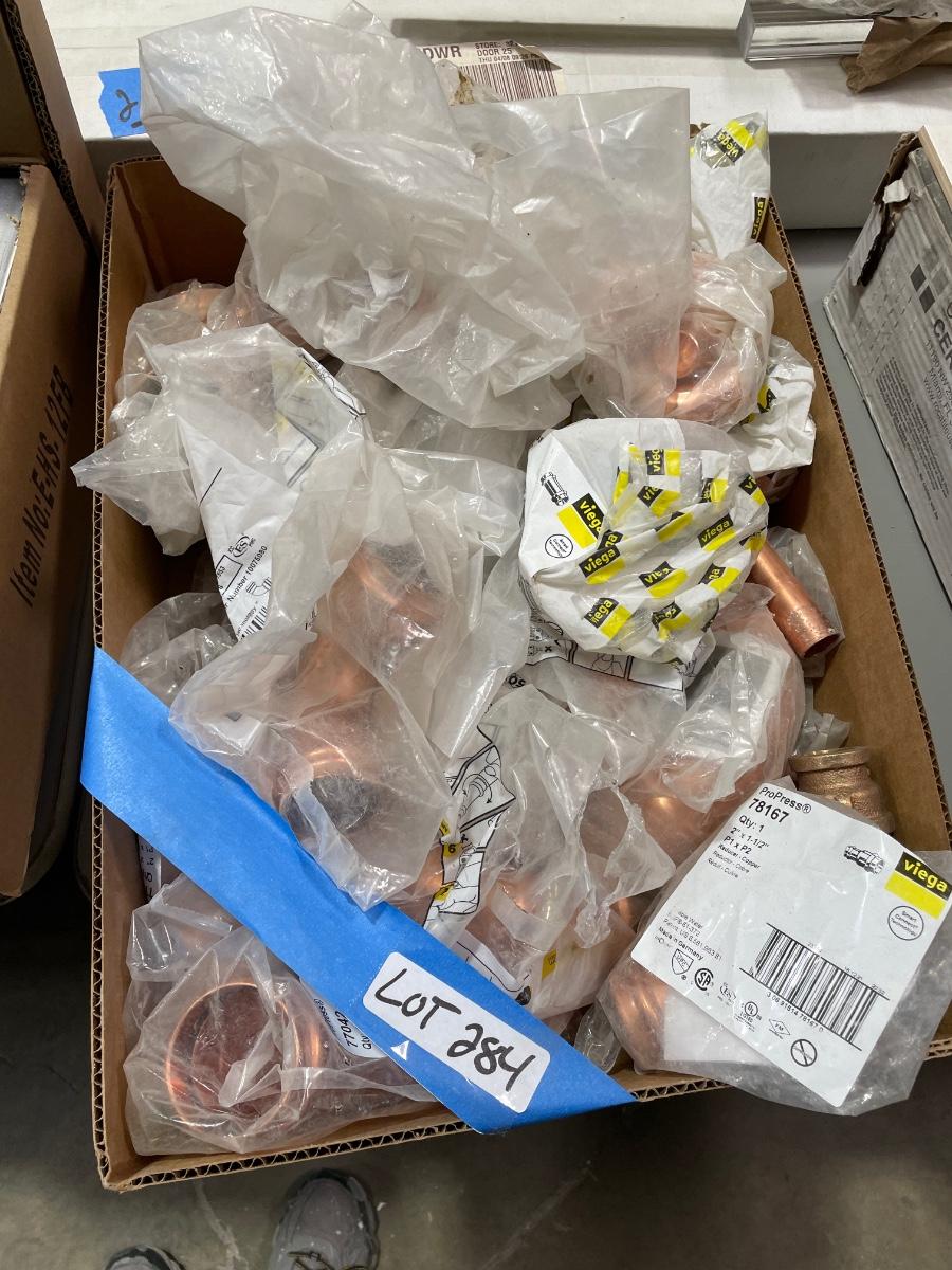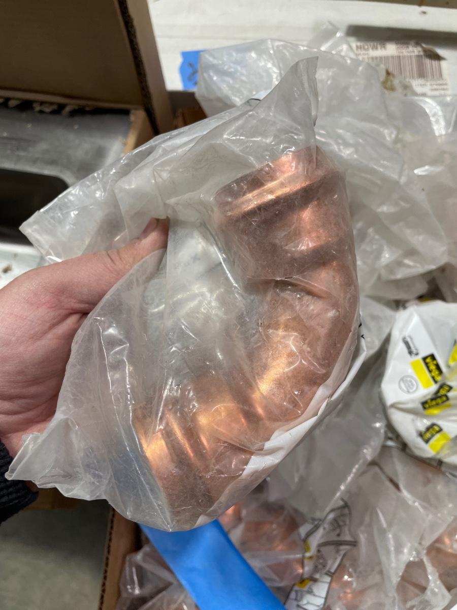 Box Misc. COPPER plumbing fixtures - various sizes in bags mostly