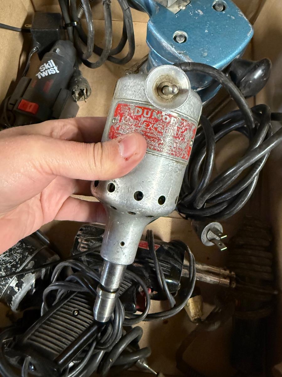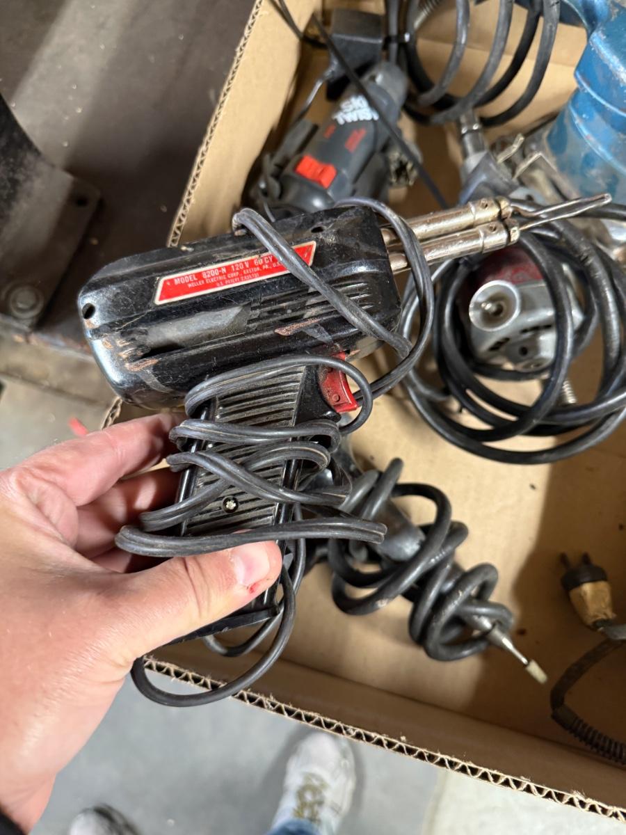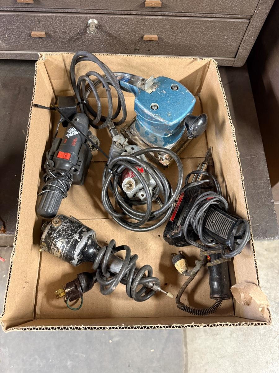 Box of 5 Misc. Electrical Tools – Sanders/soldering gun/drill/electric screwdriver
