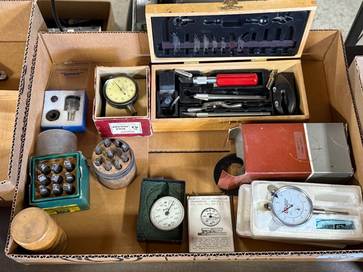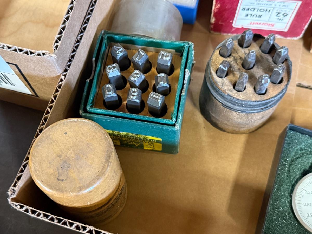 Box of misc. tools – Number Punches/Exacto Set/micrometer