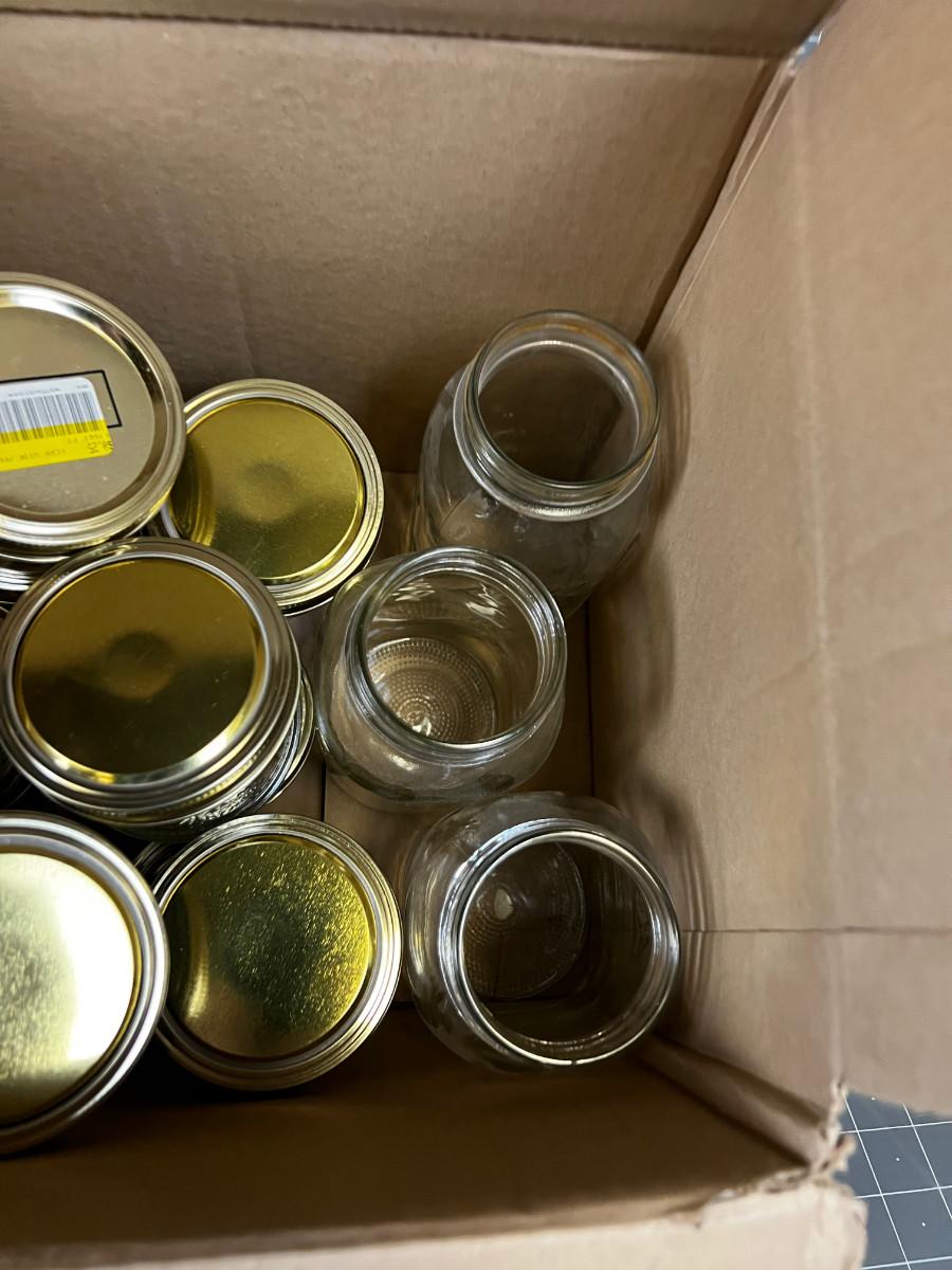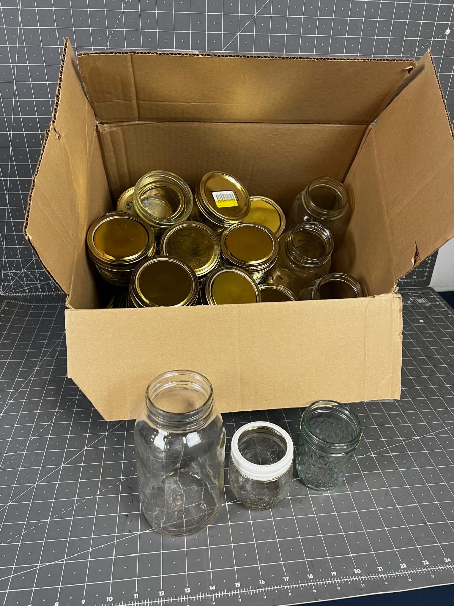 Box of Mostly wide mouth 1/2 pints jars plus some others