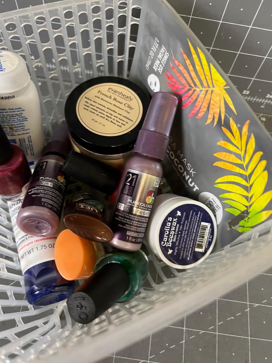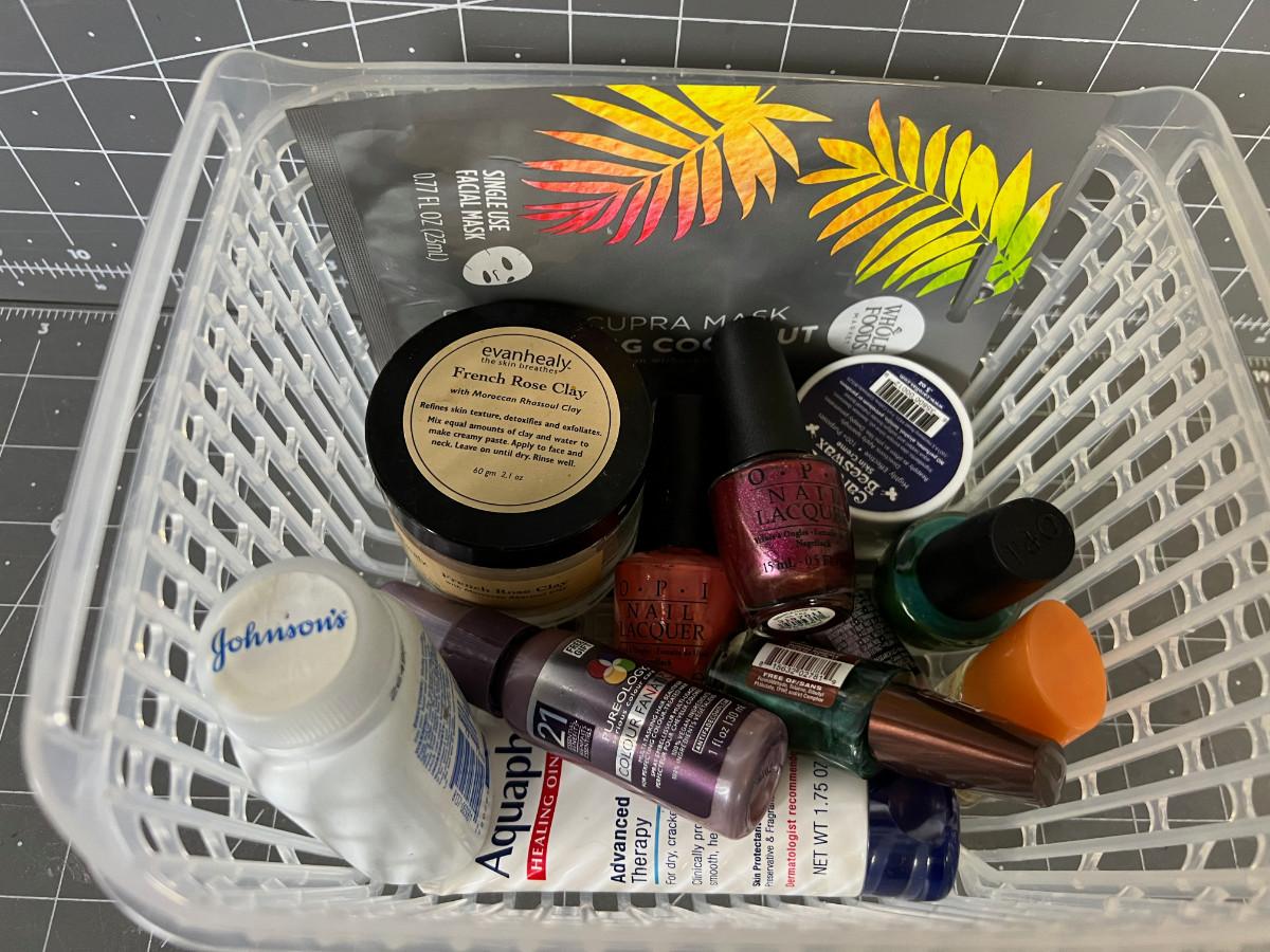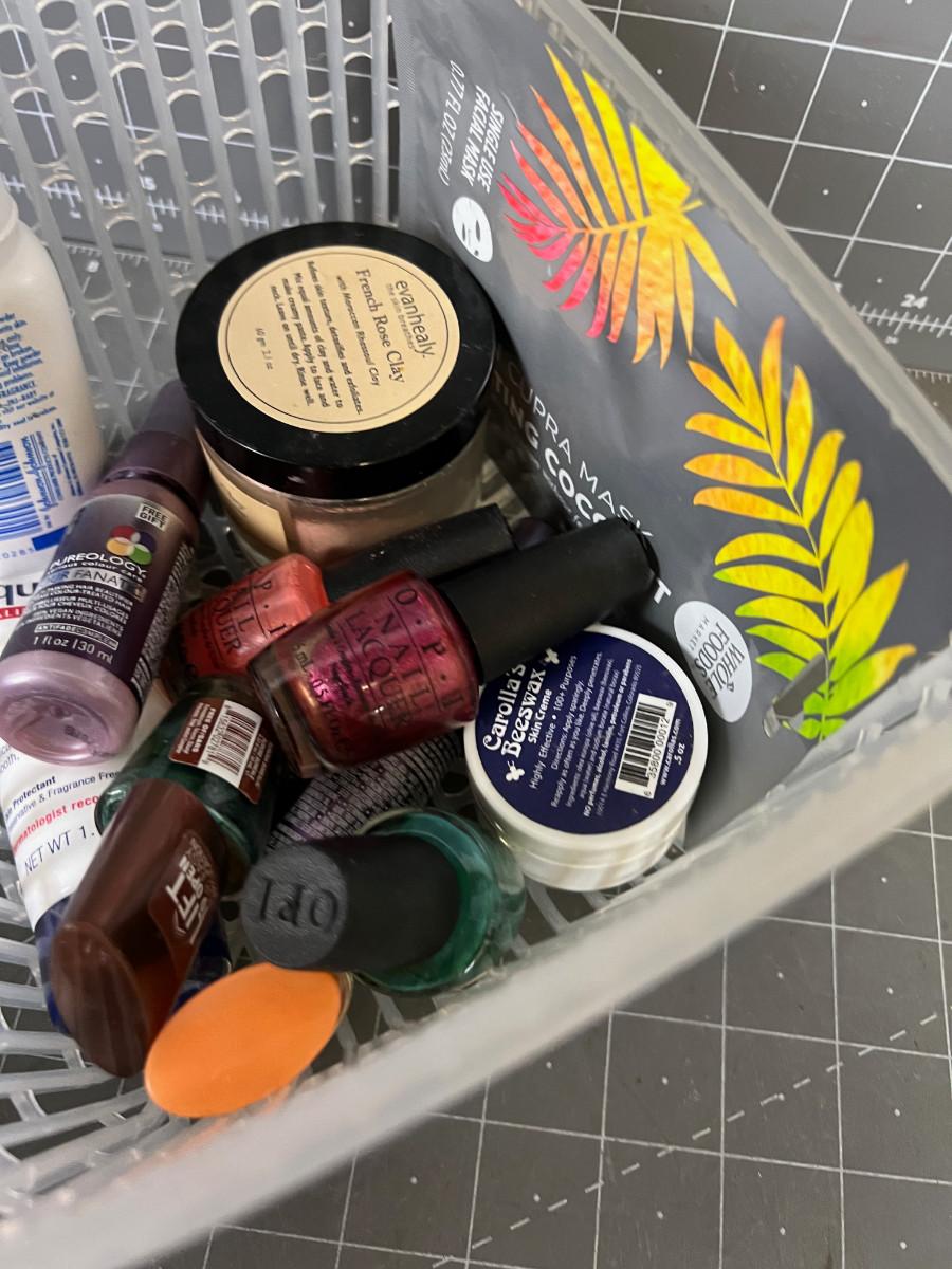 Box of Nail polish and Makeup items