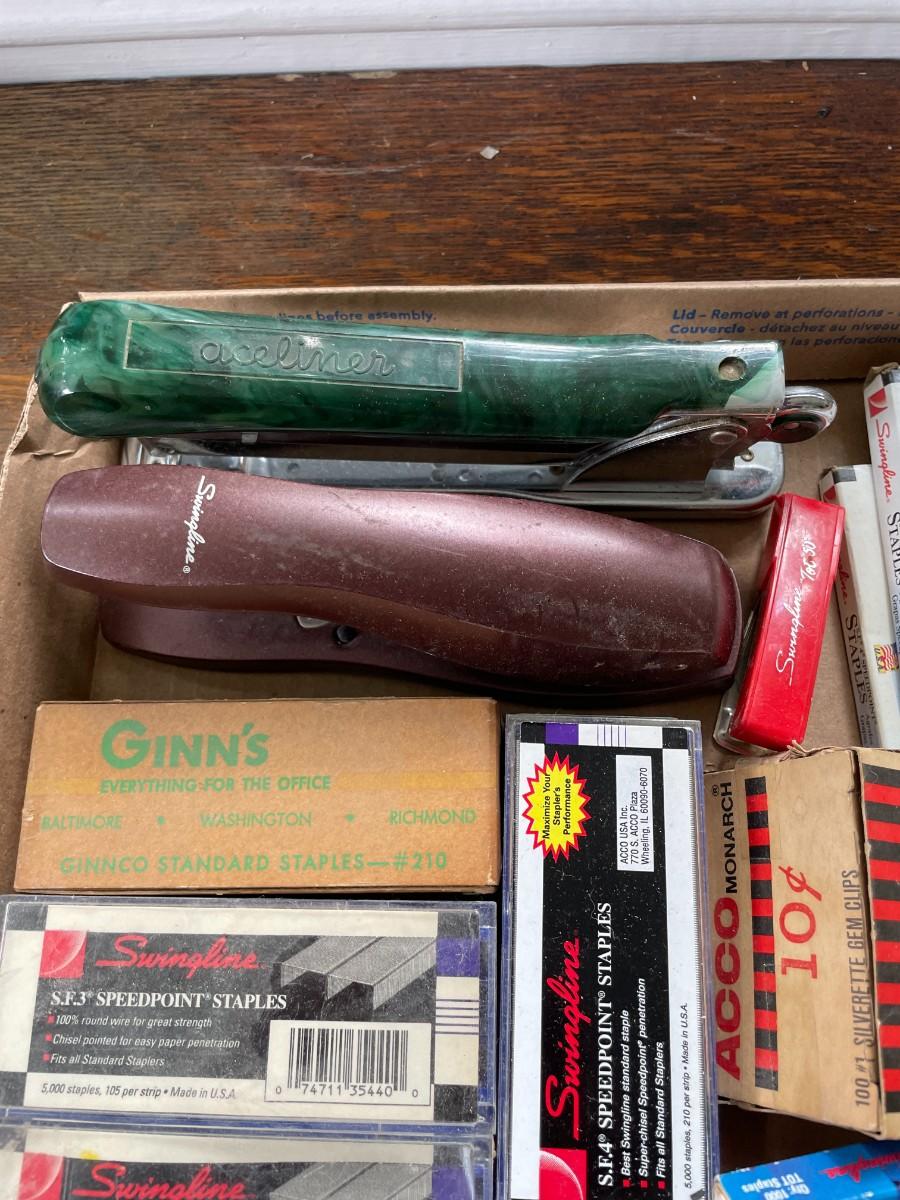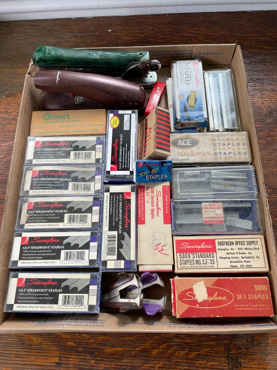Includes two staplers, hundreds of staples and a few staple removers.
