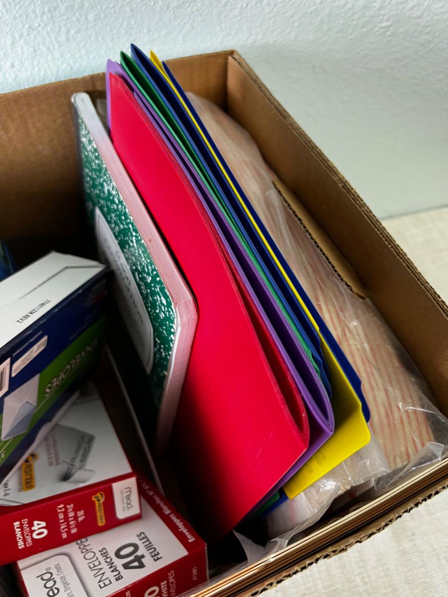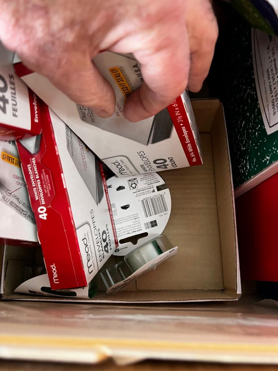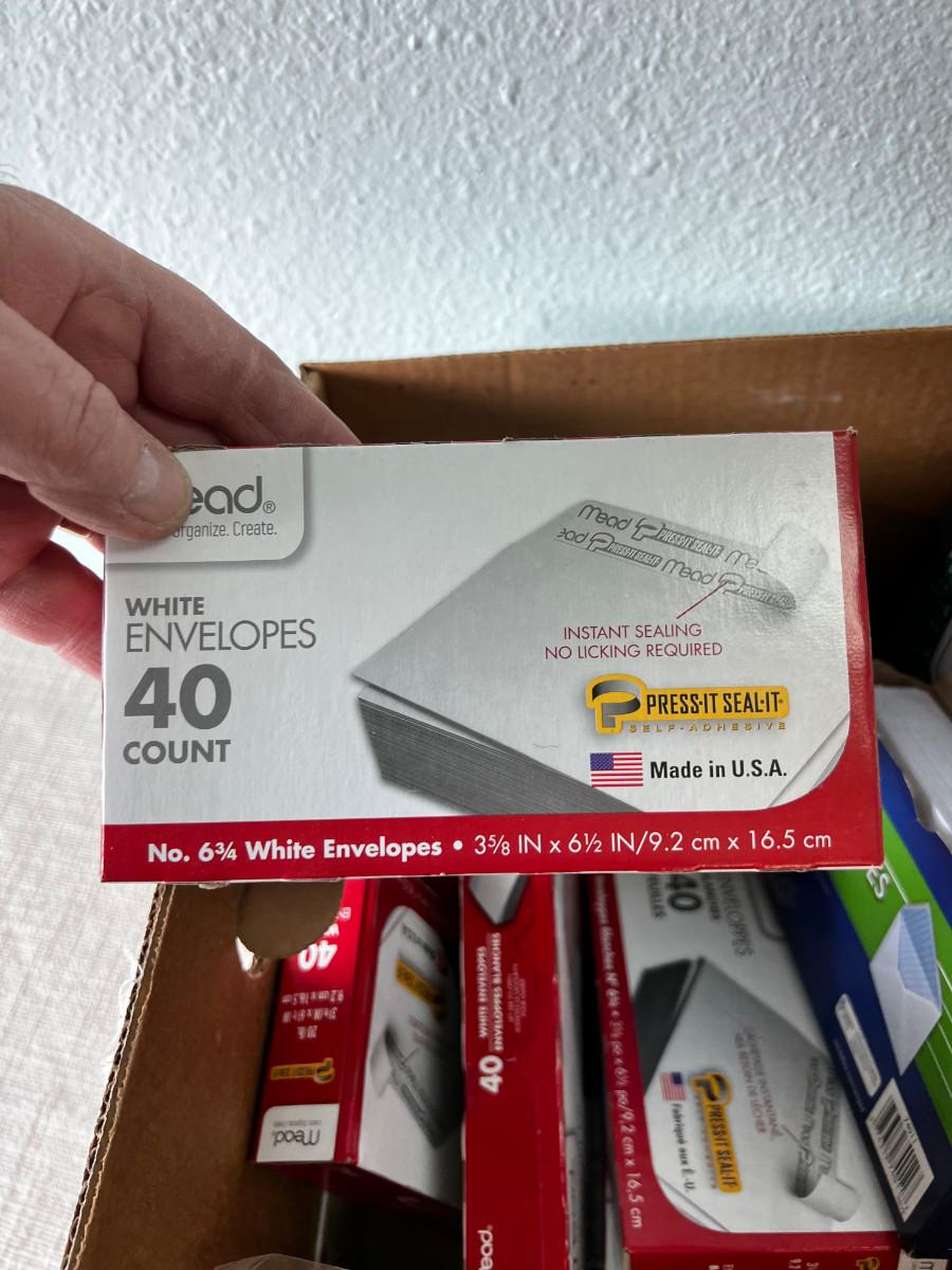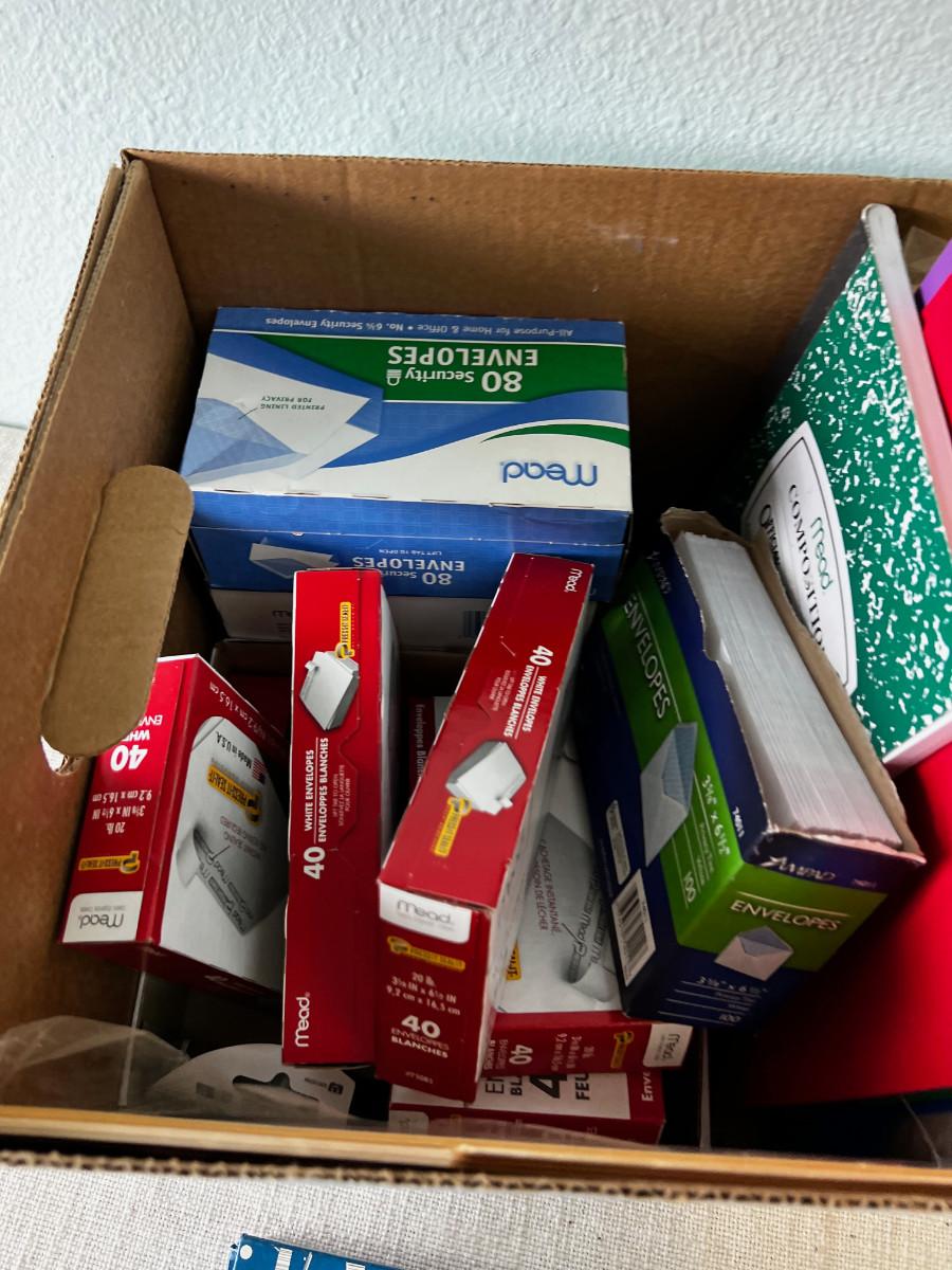 Box of Office Supply Items like Envelopes etc.