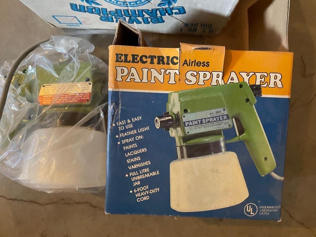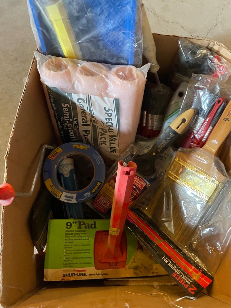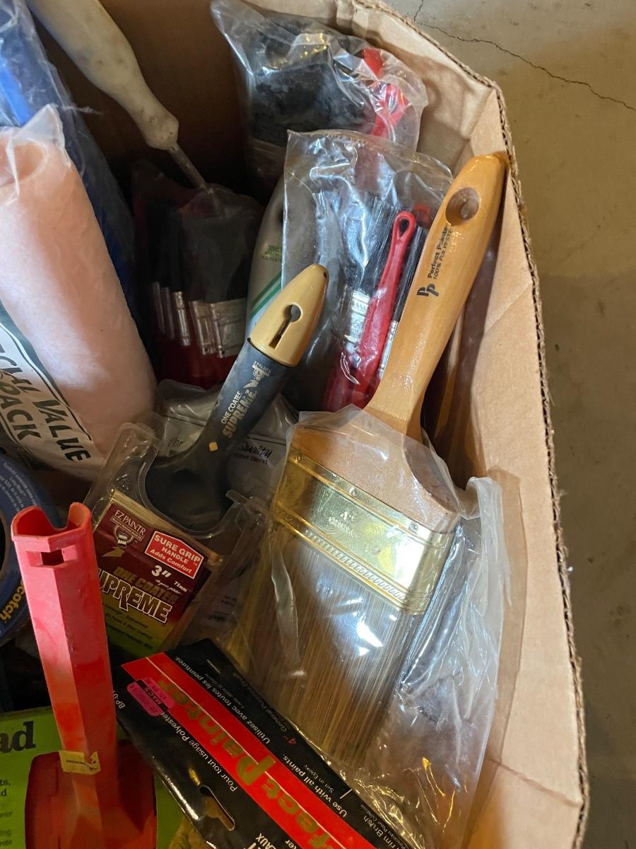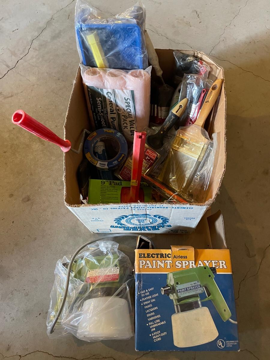 Includes electric airless, paint sprayer new in box and many new brushes and used tools.