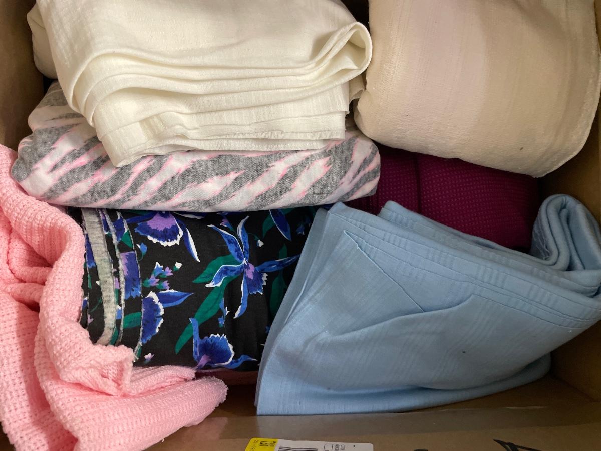 Box of pink and pastel fabric