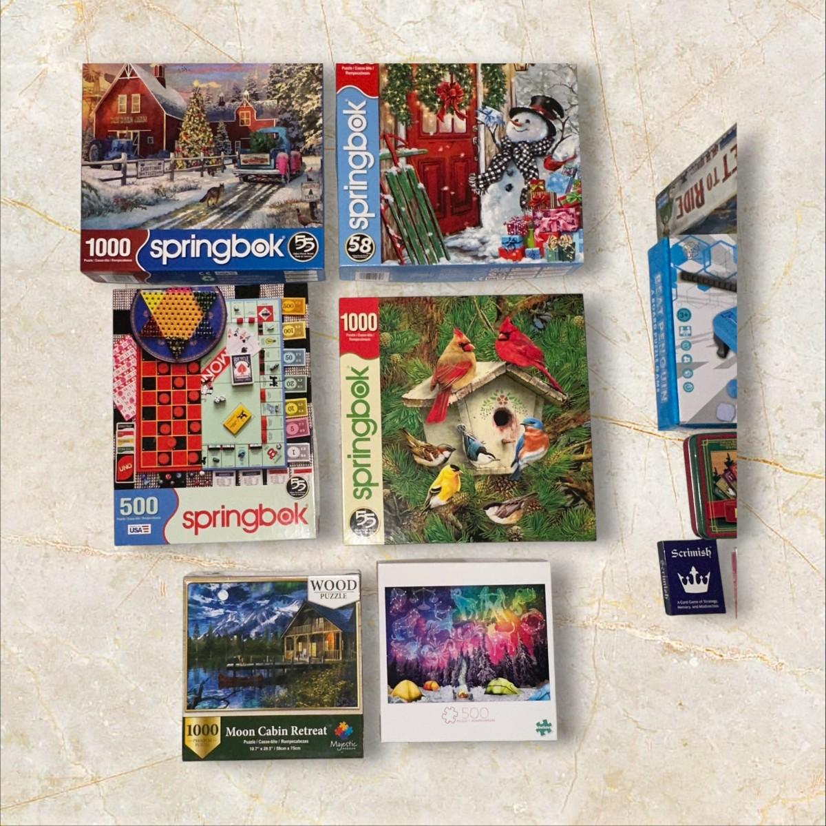 Box of Puzzles, 1 Sealed w Wood Pieces