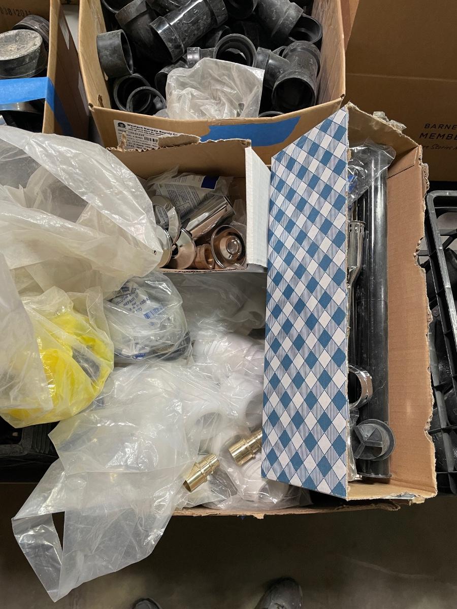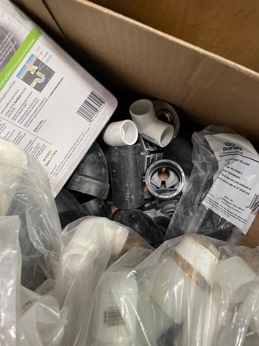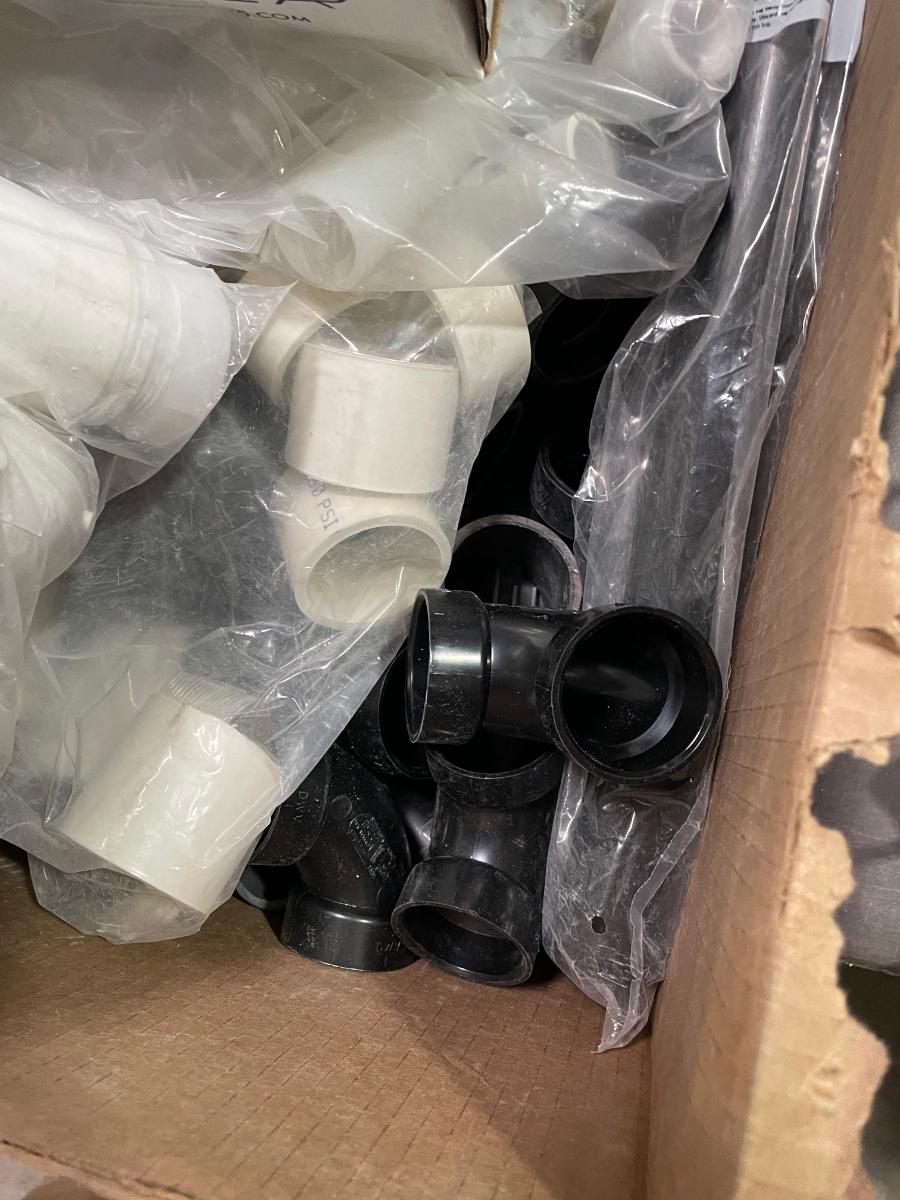 Box of PVC pieces - look to be 1-1/2" assorted pieces - elbows, corners, etc