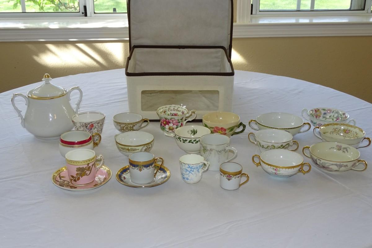 Large Set of Antique Teacup and Saucers Sets and Sugar Pot