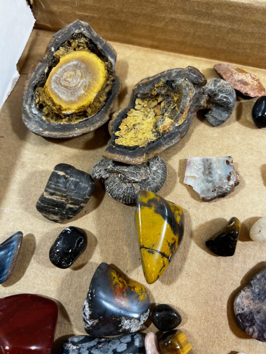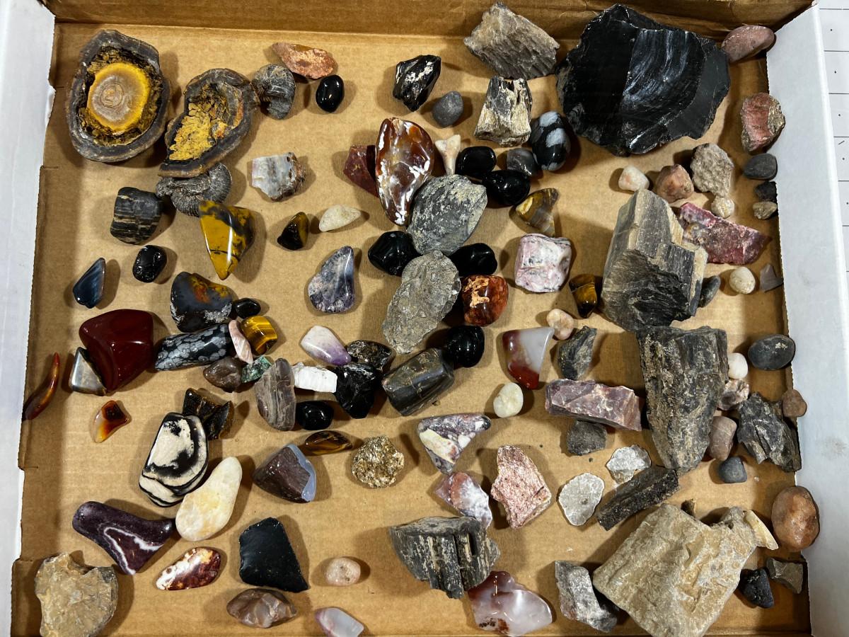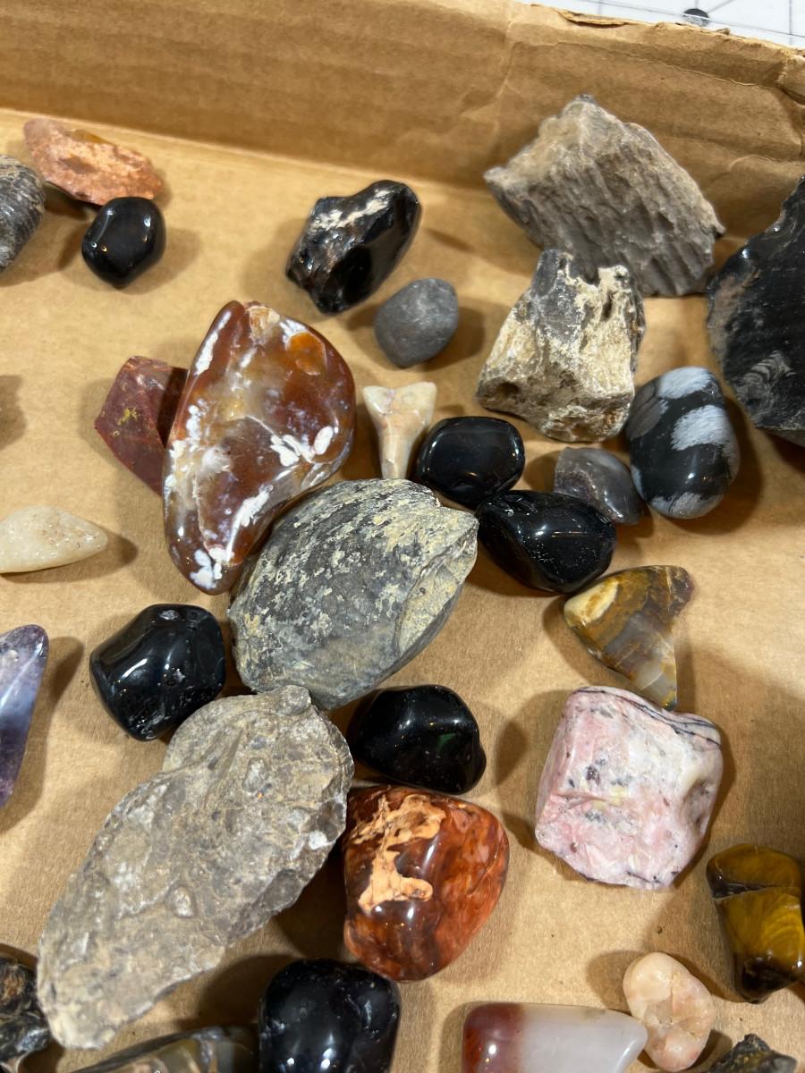 Mixed Some Polished and some not. Fossils. GREAT, Box of mixed Rocks / Crystals!
