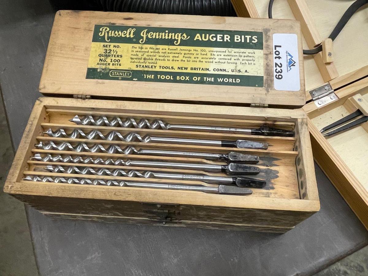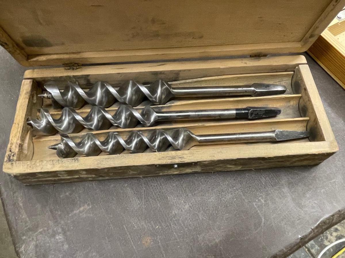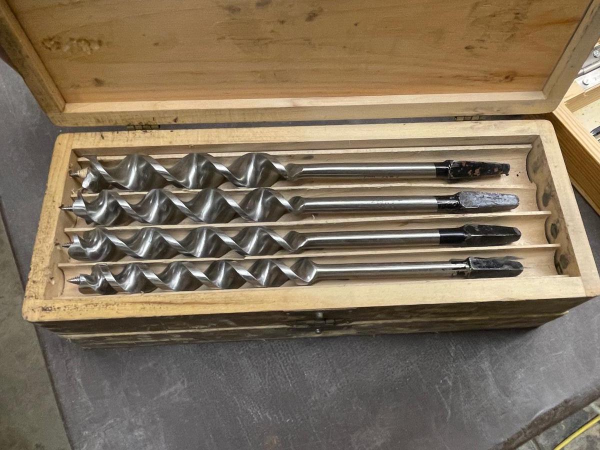Wood Box of Russell Jennings Auger Bits - See 3 different photos for all