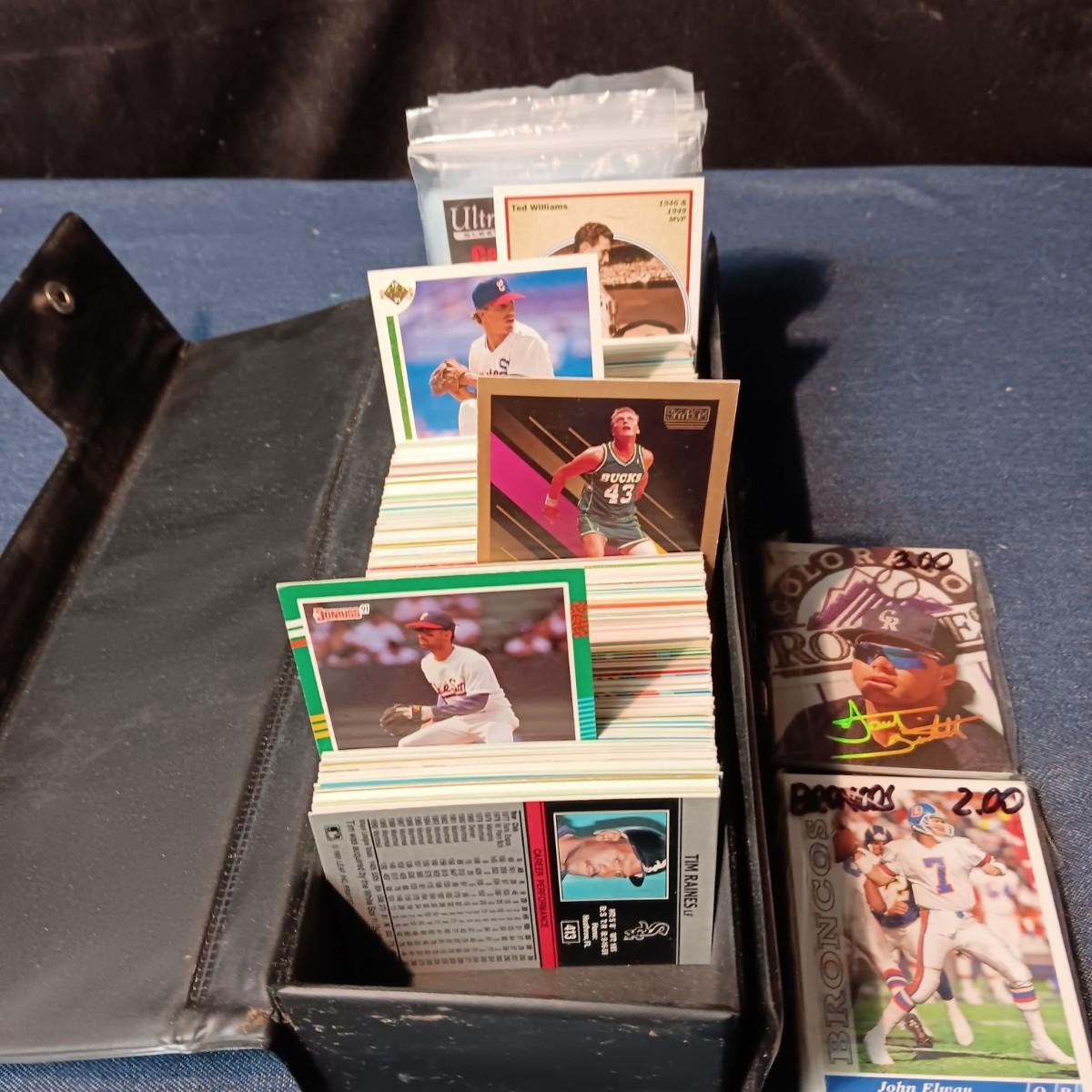 BOX OF SPORT TRADING CARDS AND CARD SLEEVES