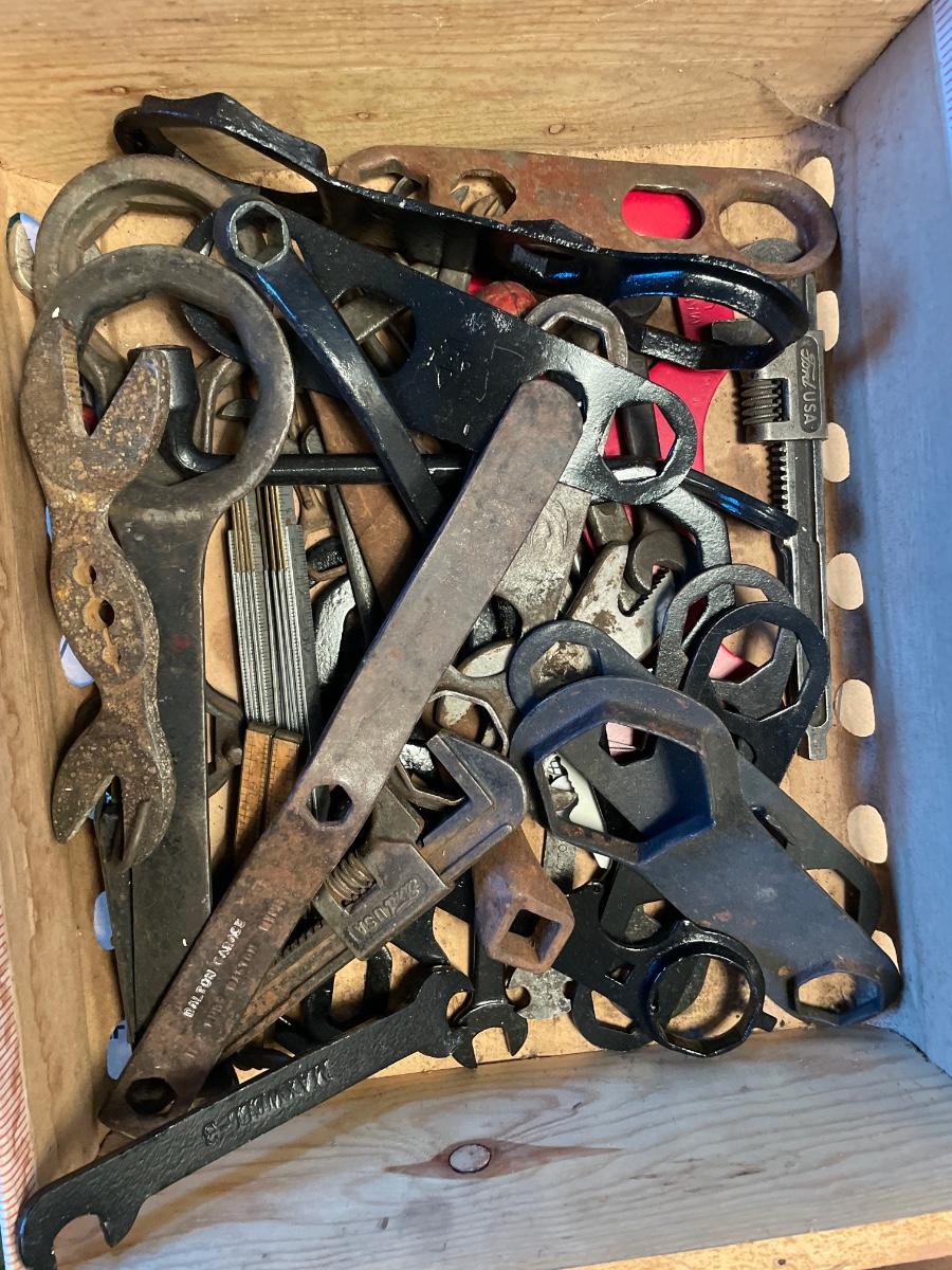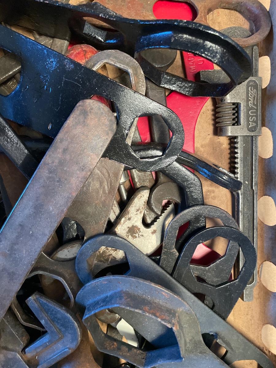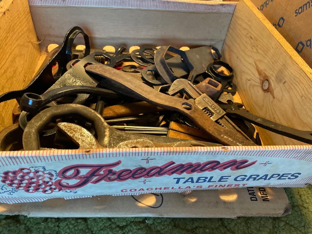Box of vintage auto tools