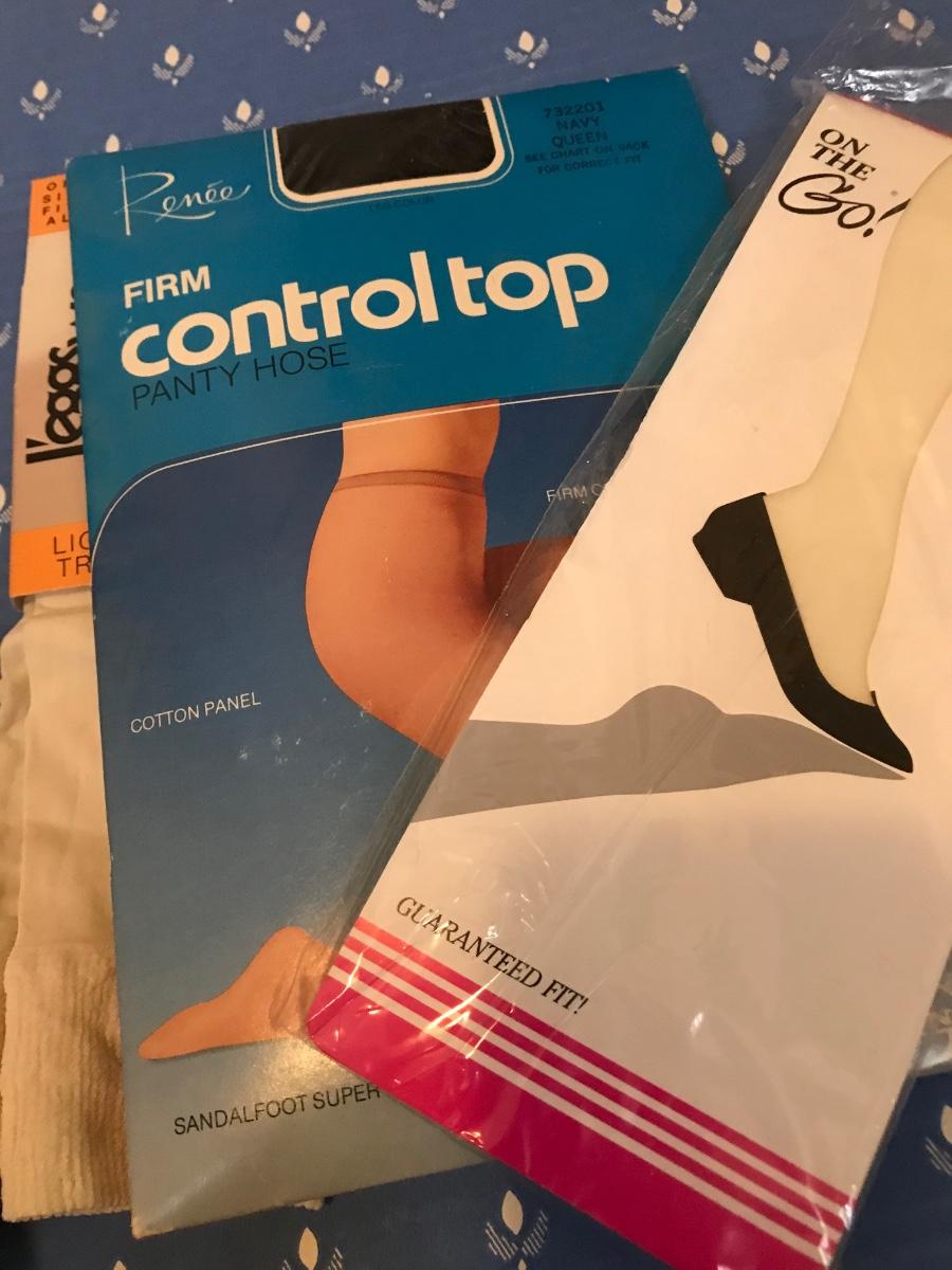 Some new old stock - fruit of the loom and Hanes. Mostly thigh highs, some pantyhose and knee highs. Size large tall.