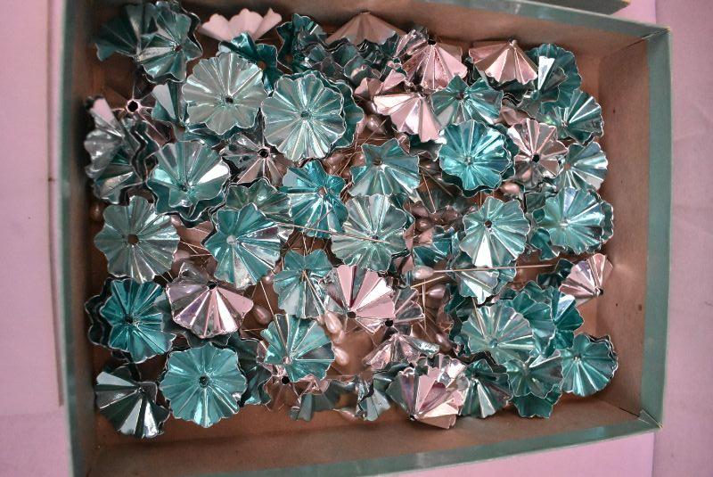 Box of Vintage Ornament Decor Pieces with Long Decorative Straight Pins