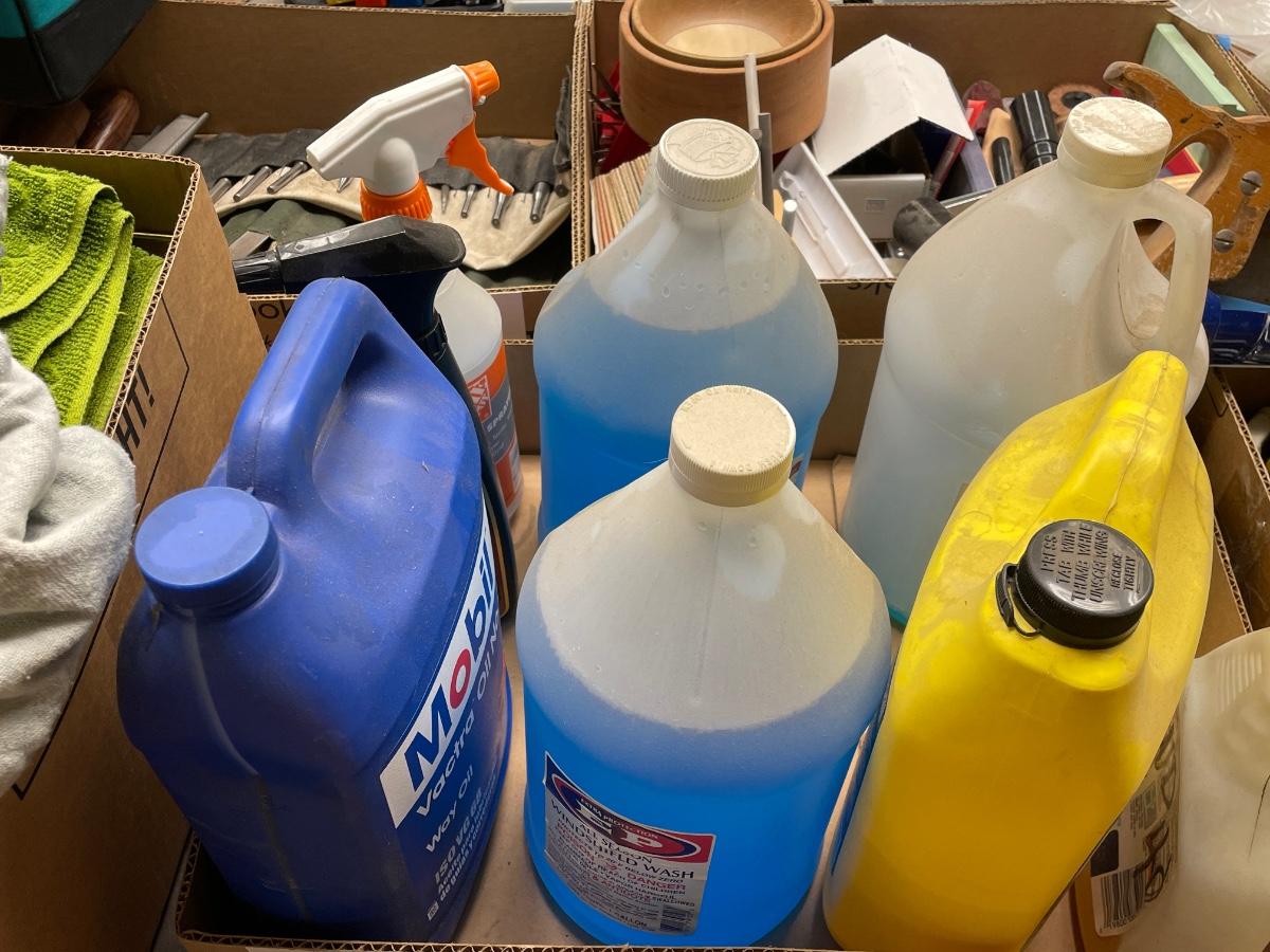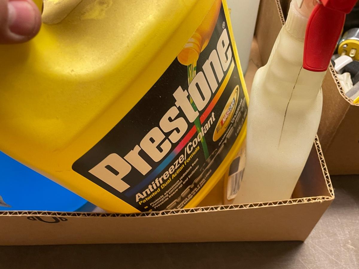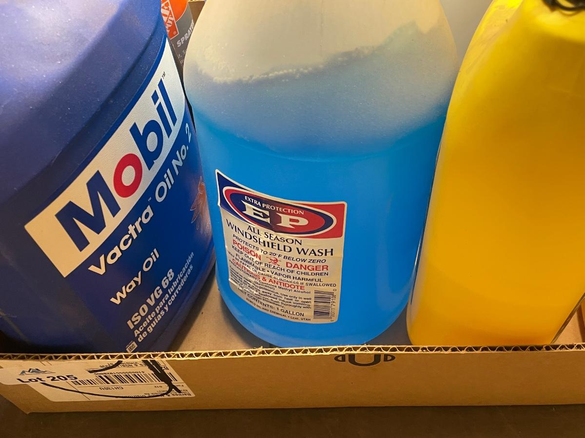 Box of 8 various liquids - Wiper Fluid/Antifreeze/Oil
