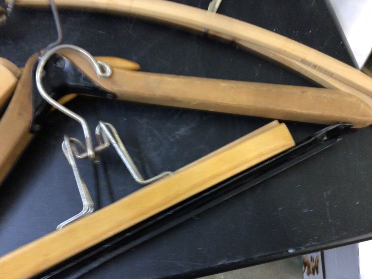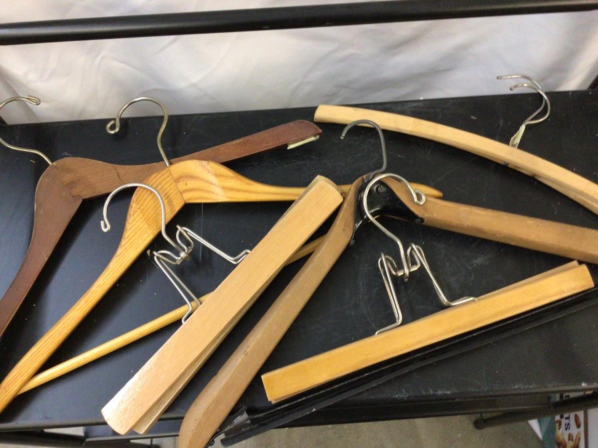 You get a full box of wood clothing hangers. These would great for vintage clothes or just every day clothes. A variety of styles and types.
