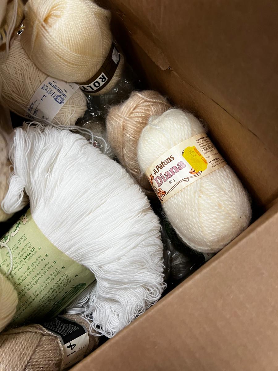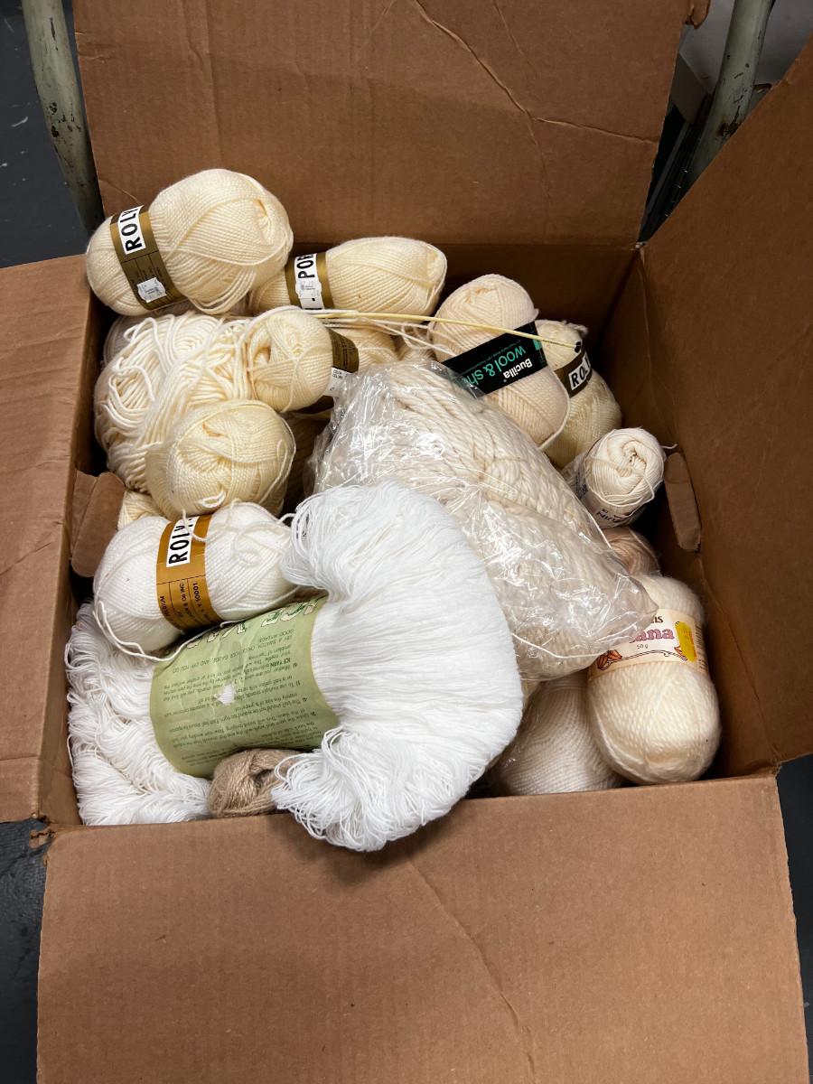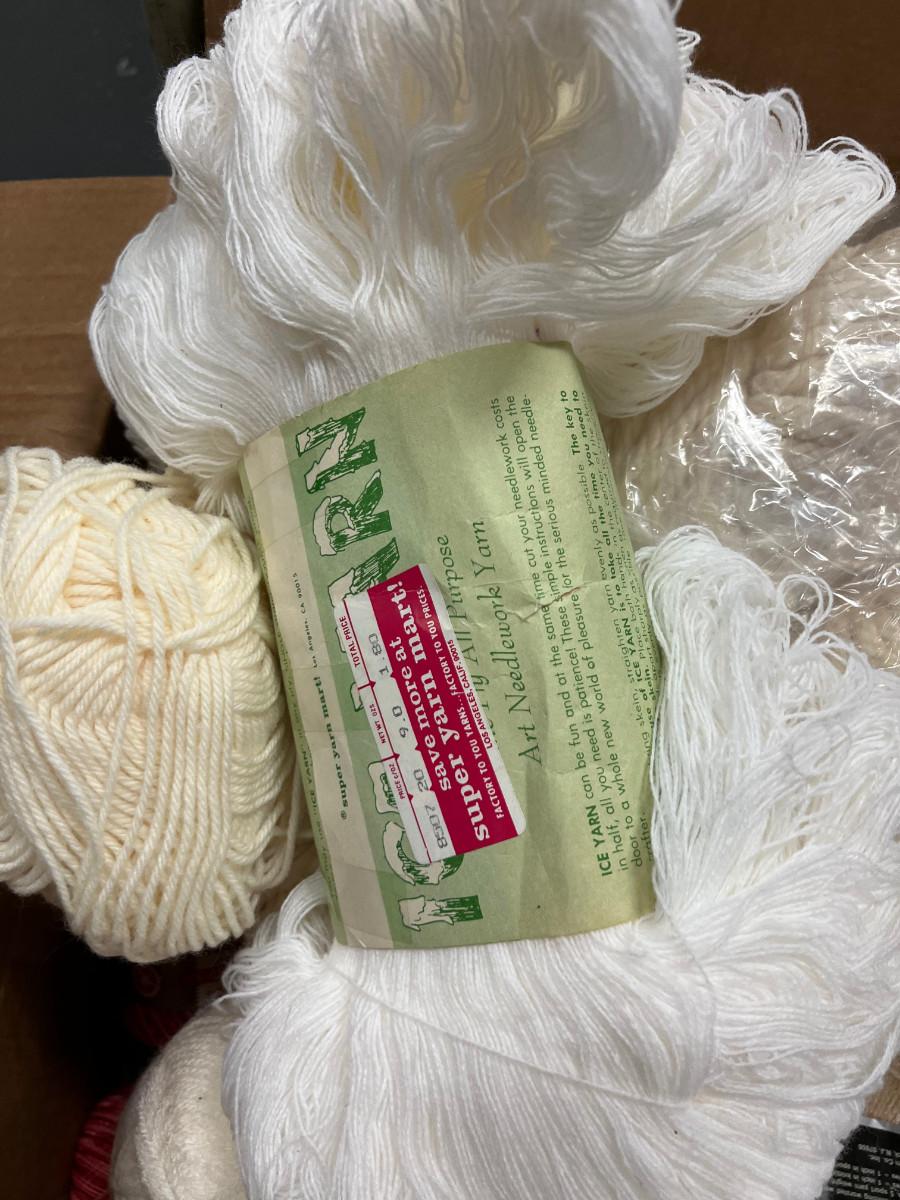 Box of Yarn and Embroidery Thread Mostly Whites and Cream