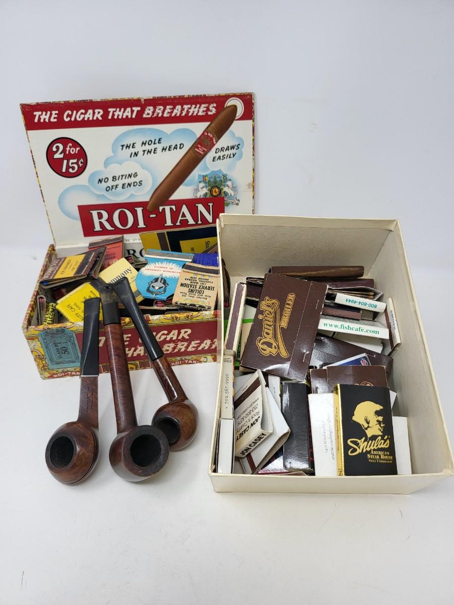 Box Of Vintage Matchbooks & Briar Pipes (3)