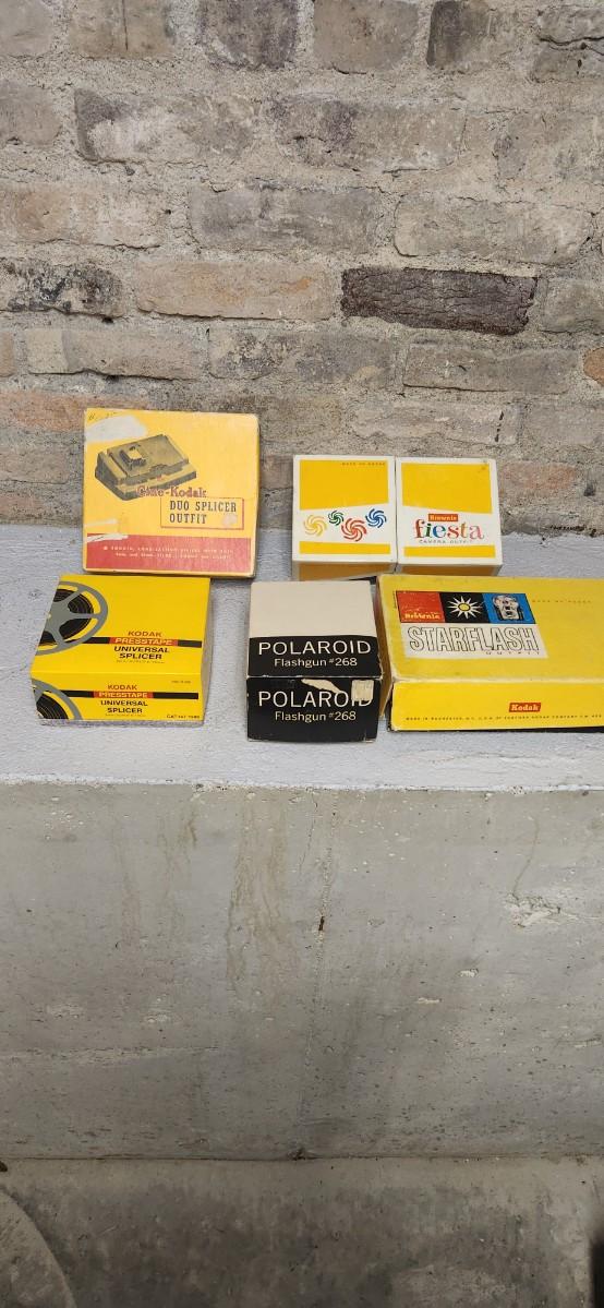 Boxed Presstape Splice, Duo Splicer, Flashgun #268, Fiesta Camera and StarFlash Camera