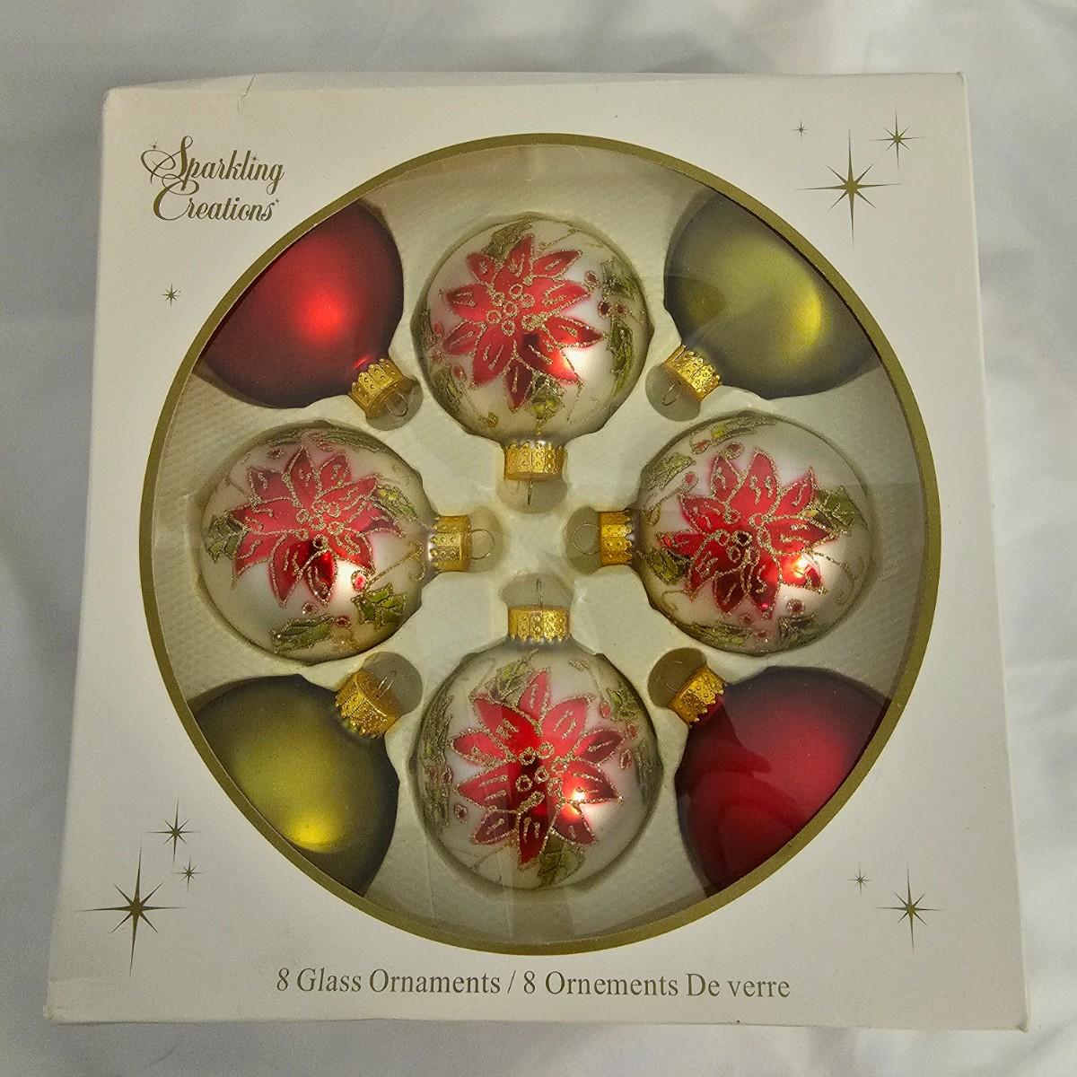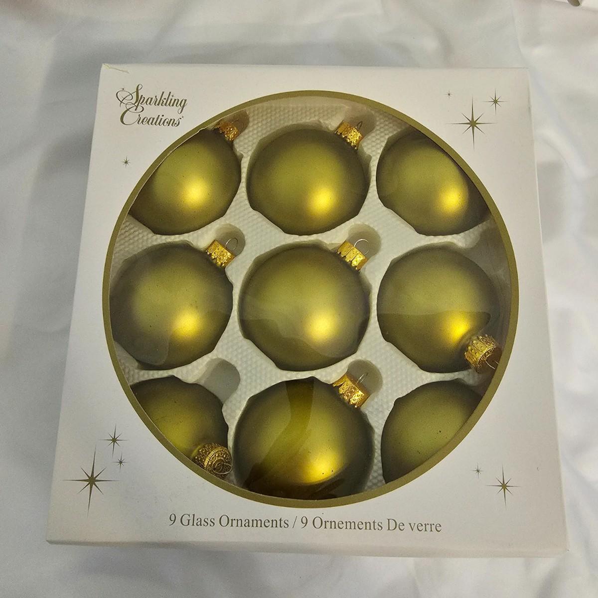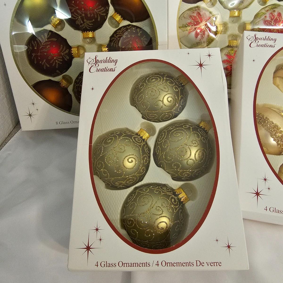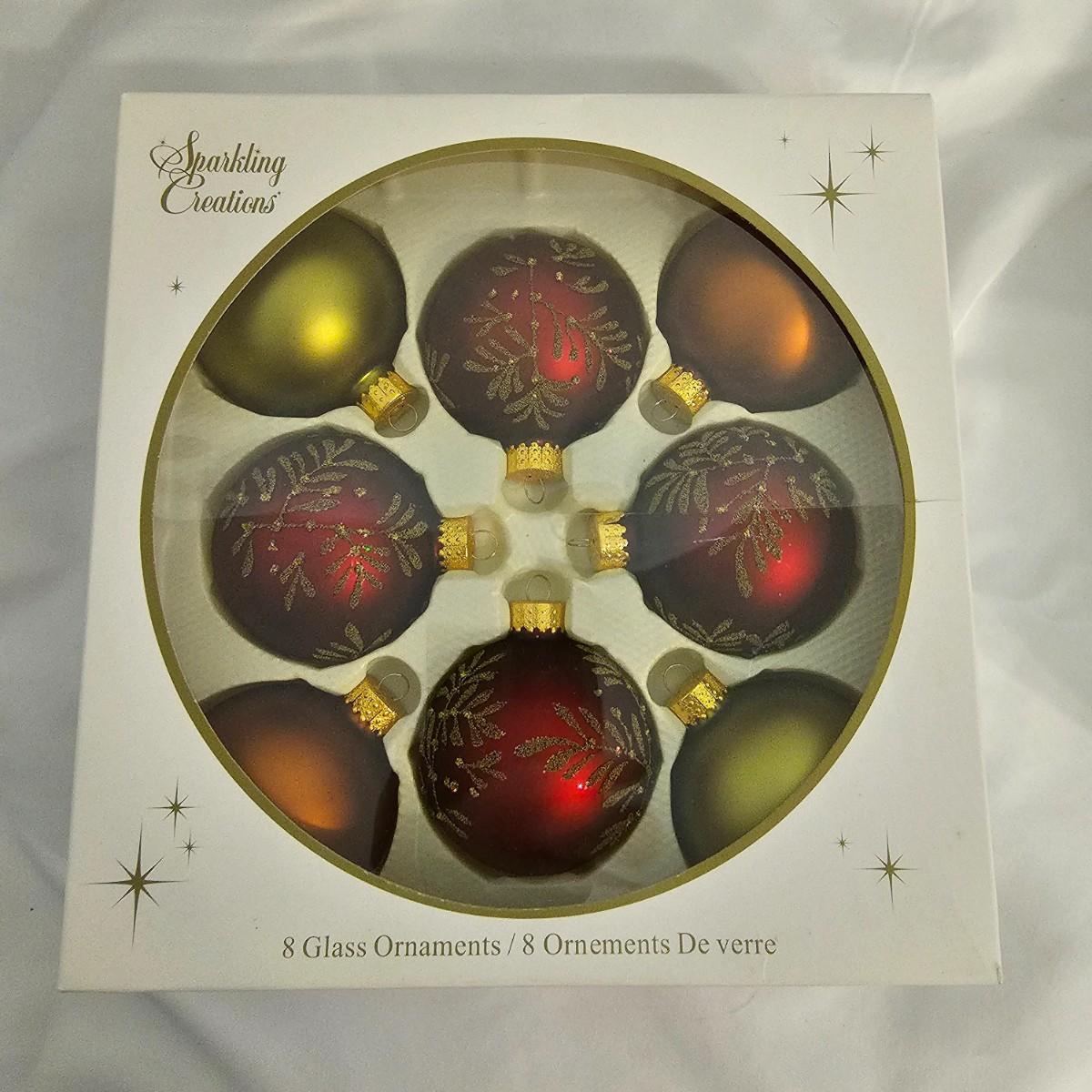 Fifteen boxes of glass Christmas ornaments, Holiday Time and Sparkling Creations brands. All in original boxes, various colors and patterns. See photos for details. Shipping available.
