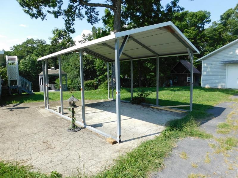 Boxed Roof Steel Carport. You will need to bring help to disassemble. Has power hook ups so be prepared to disconnect from box.