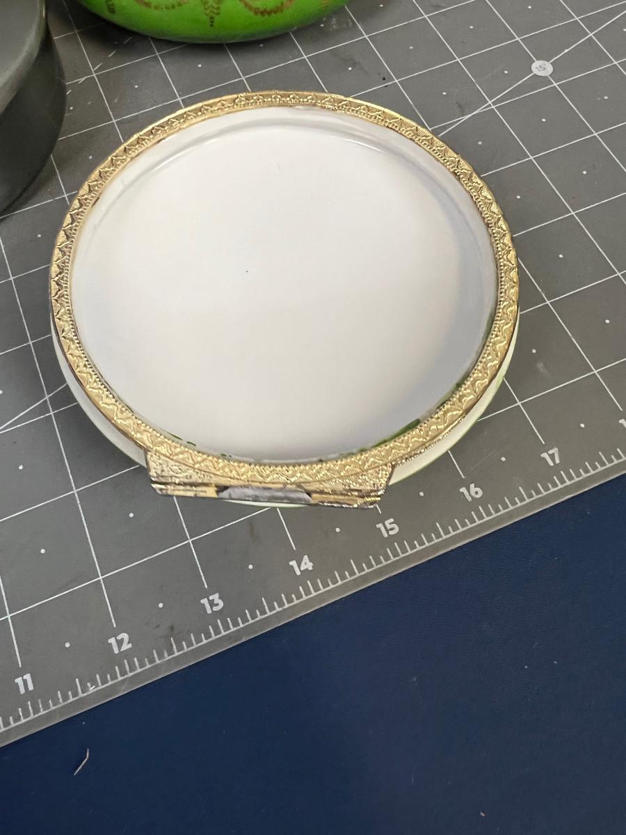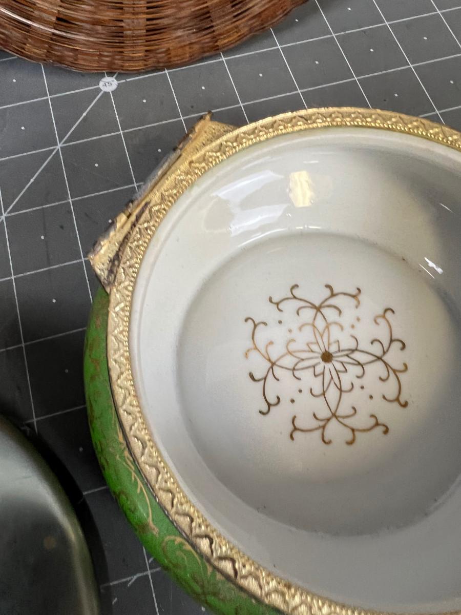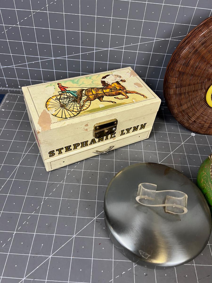 Children's Jewelry Box named Stephanie Lynn. Green one needs the hinge Repaired (originally from Fadel's ).