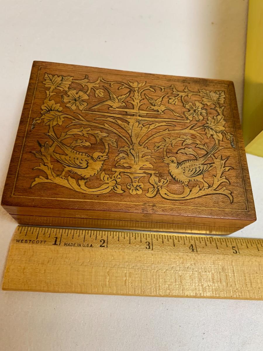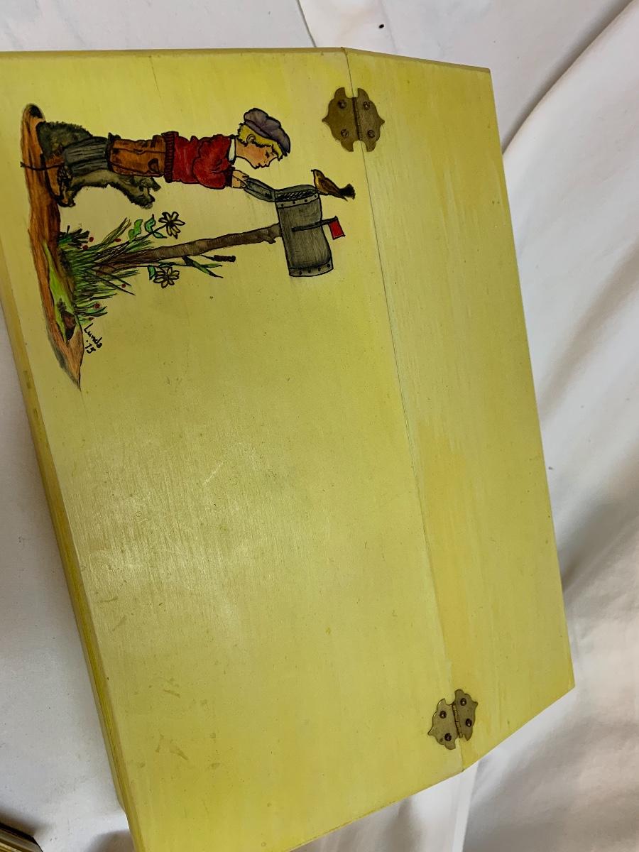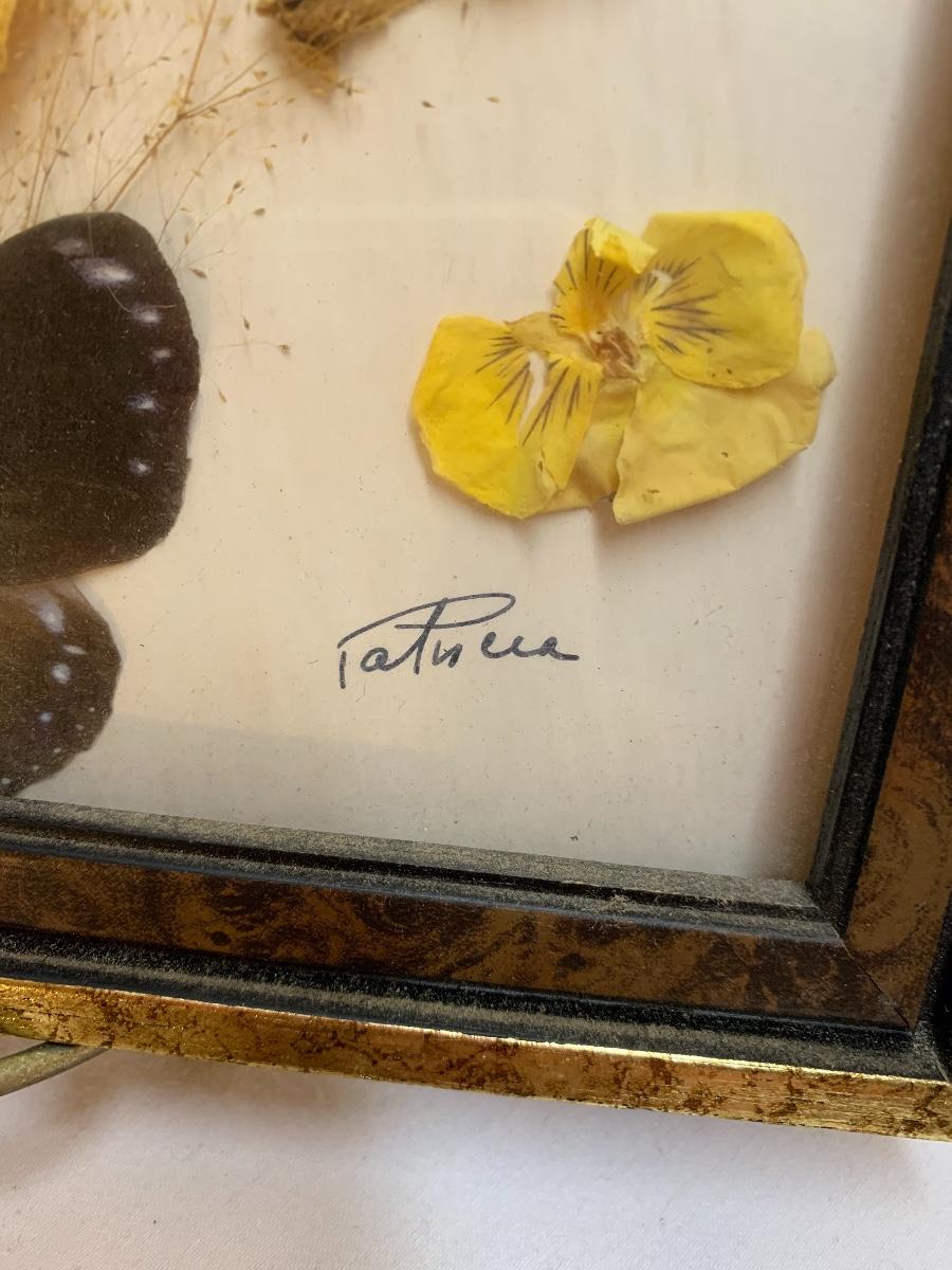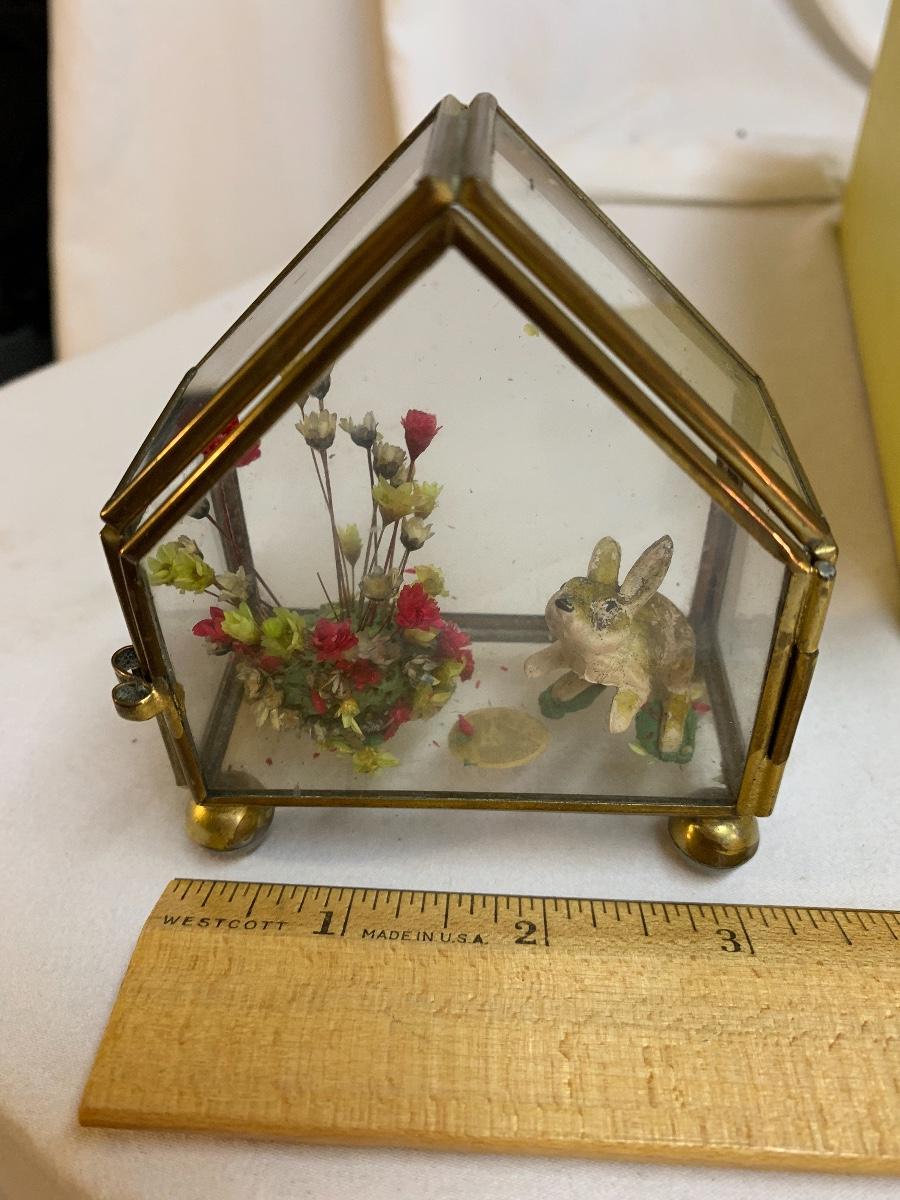 Framed butterflies, darling yellow letter box, hand-painted glass, tiny brass and glass terrarium, hand-carved box, hand-painted trinket box (both from world travels), etc...oh, and the frog!
