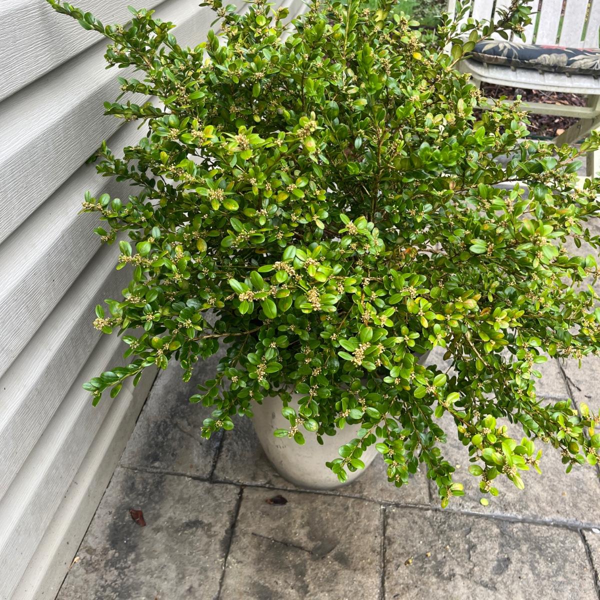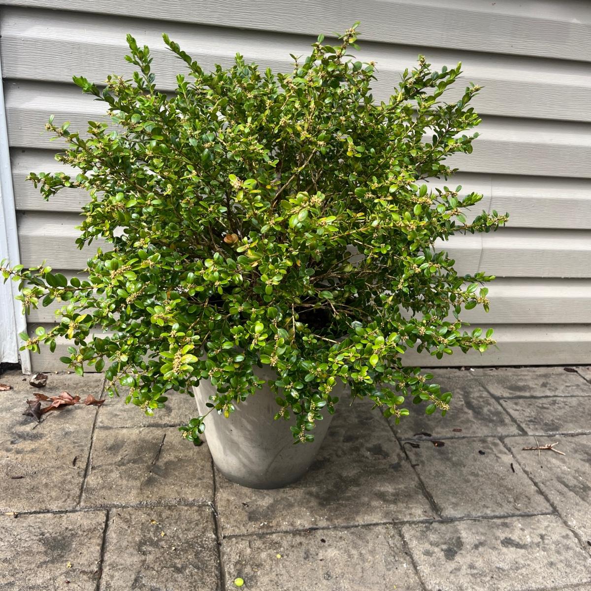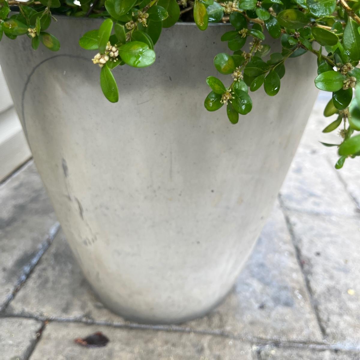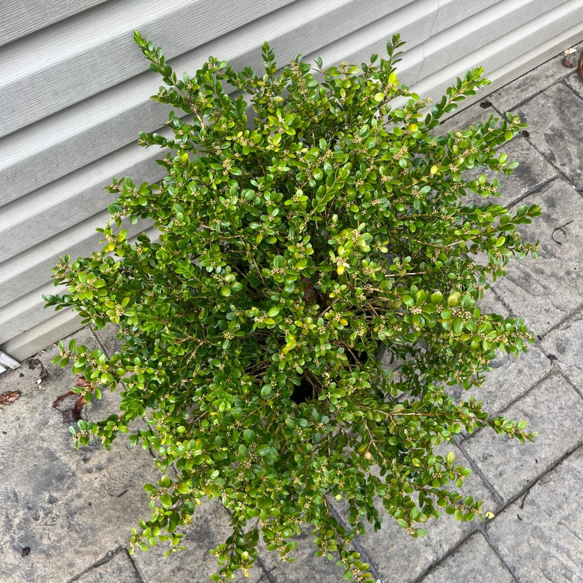 Lot includes what appears to be a boxwood in a plastic plant pot that measures 13”D x 12”H.