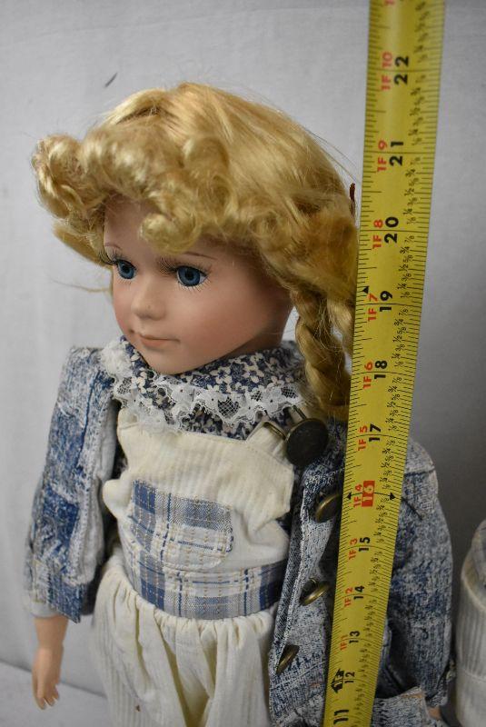 Boy Girl Twin Porcelain Dolls on Stands, approx 22" tall