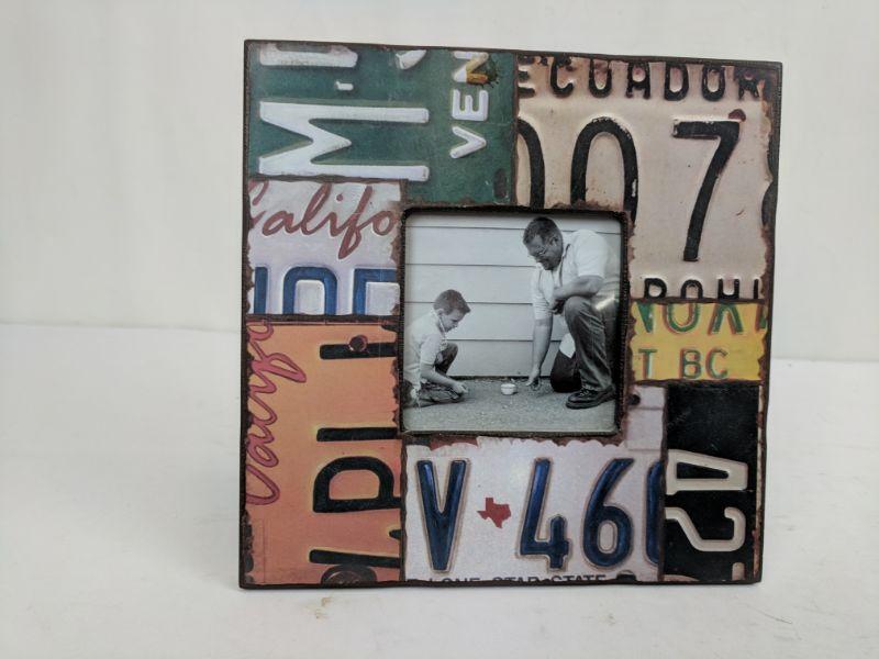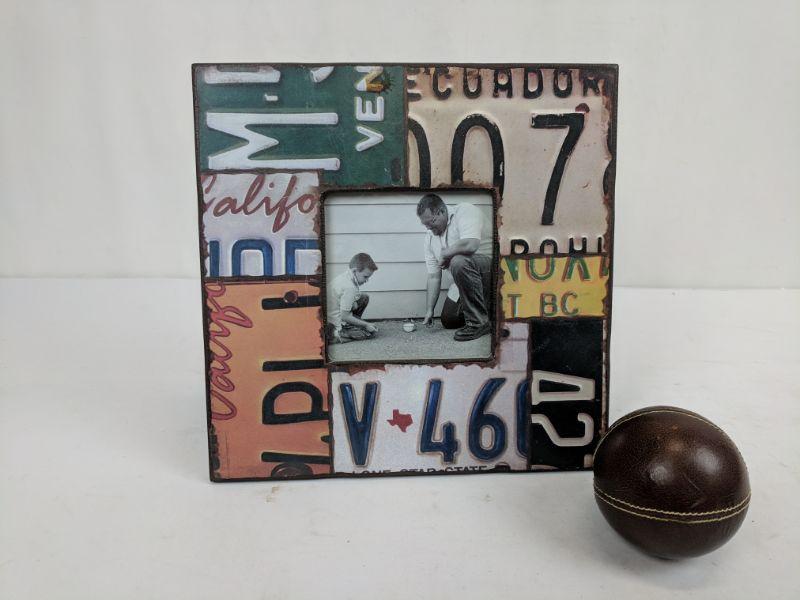 Boy Room Decor, Licence Plate Photo Frame & Heavy Sports Brown Ball Decor