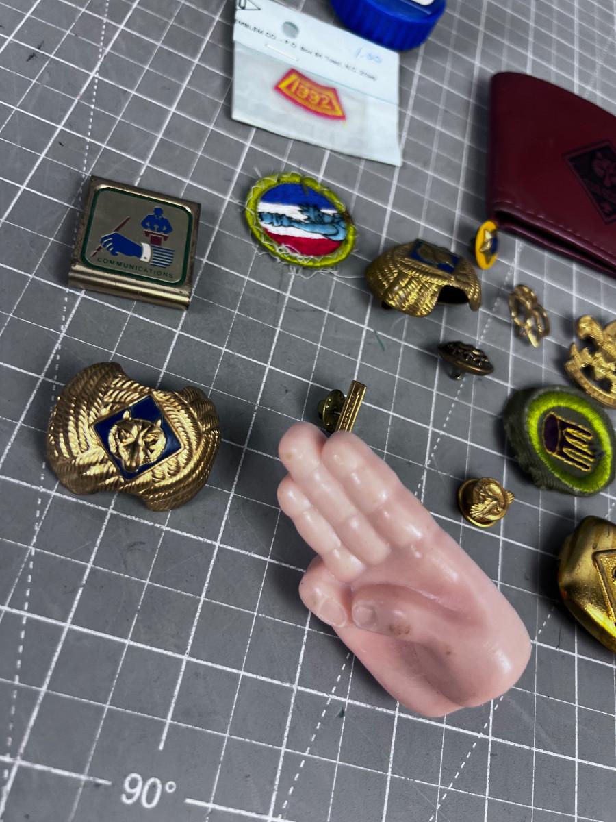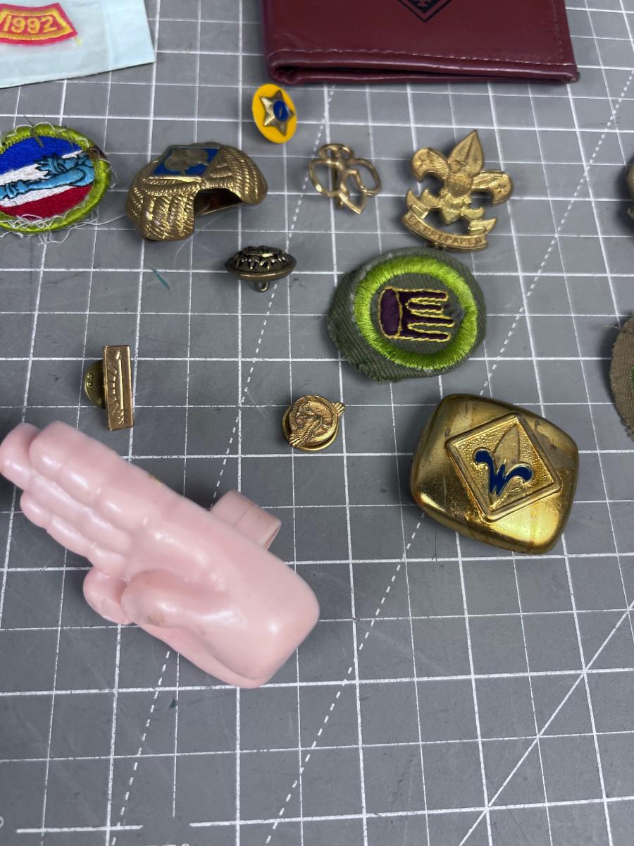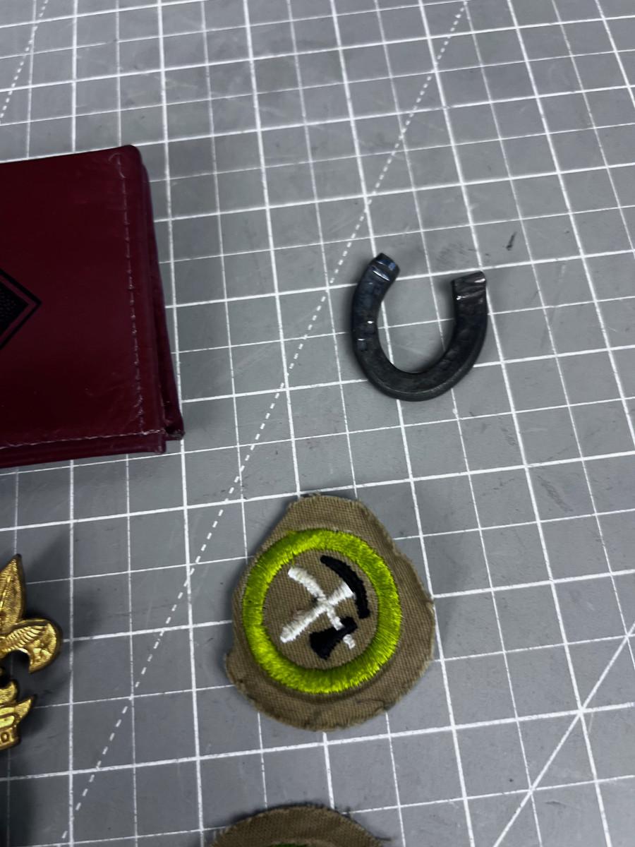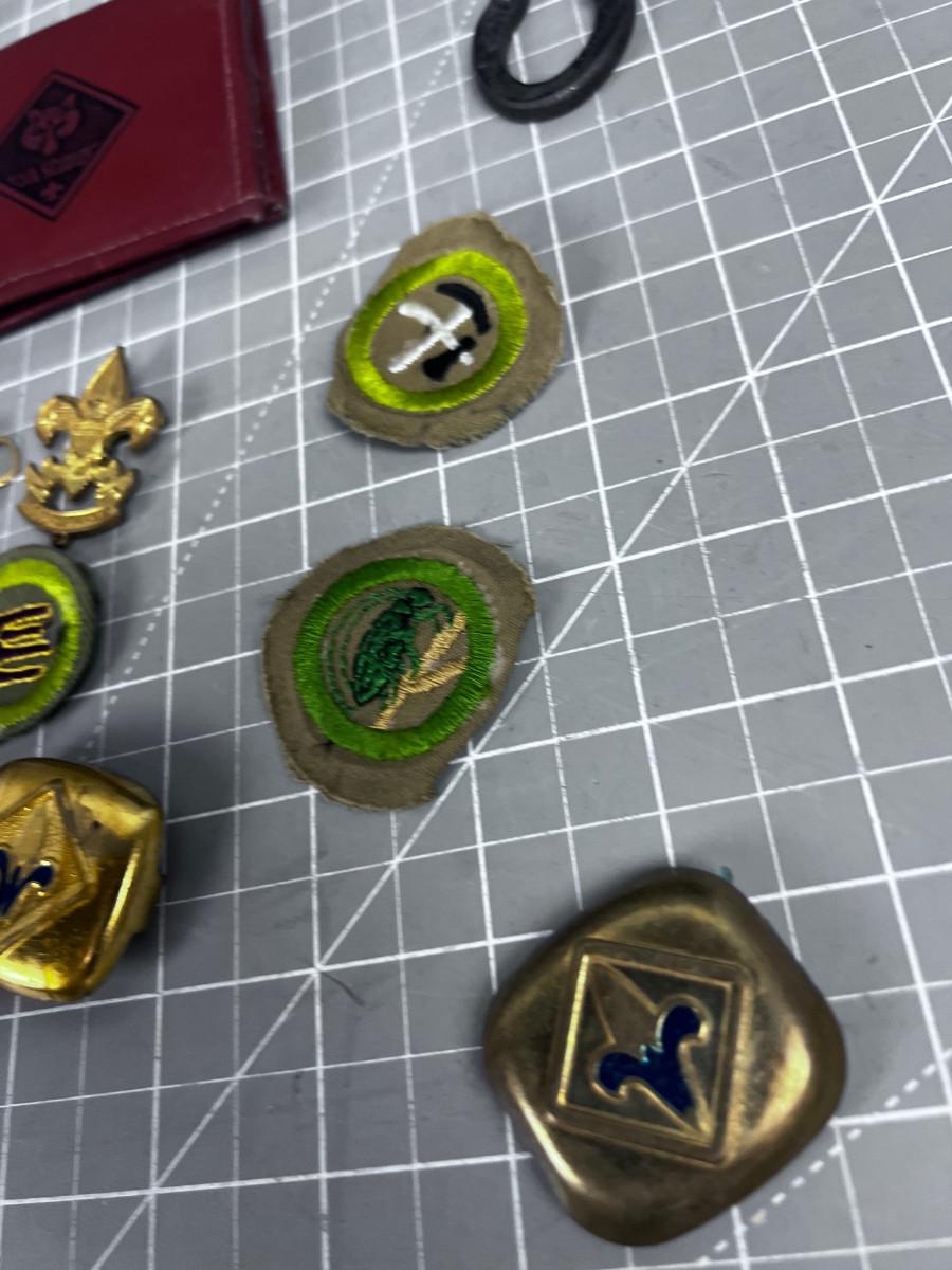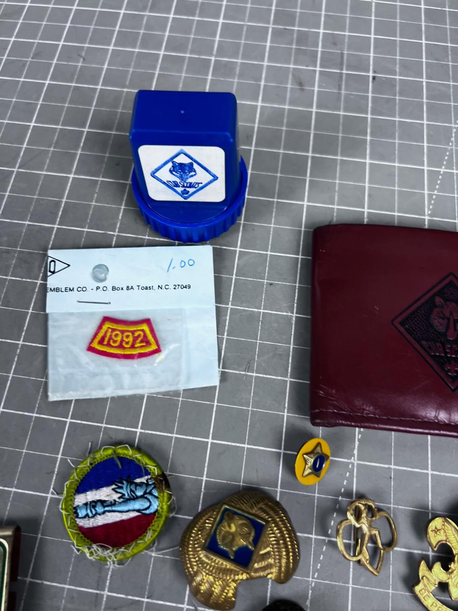 Boy Scout ITEMS; Sticker, Wallet, Pin Merit Badge.