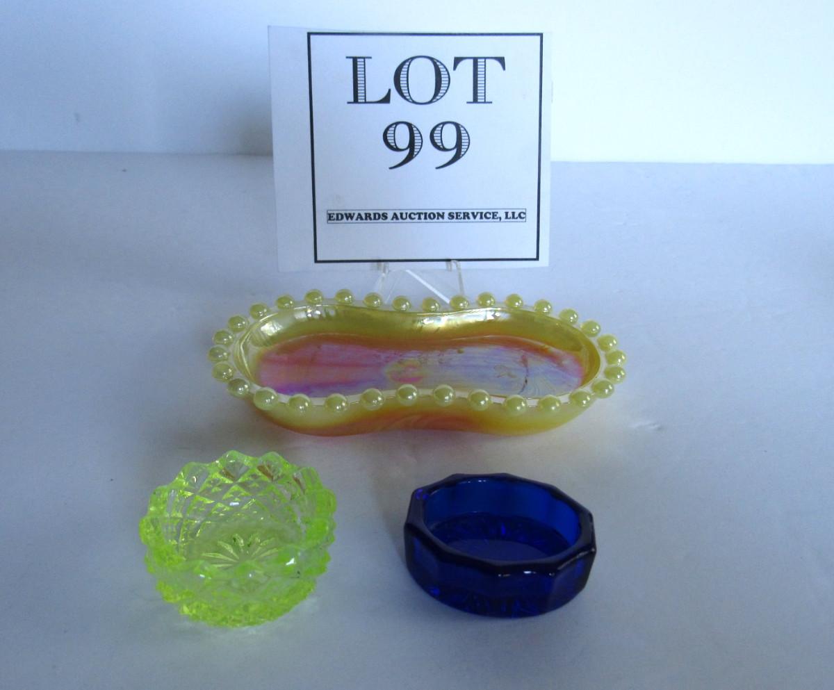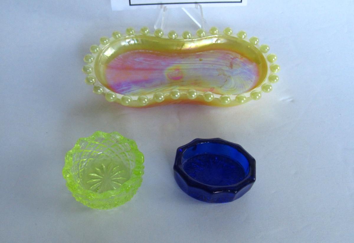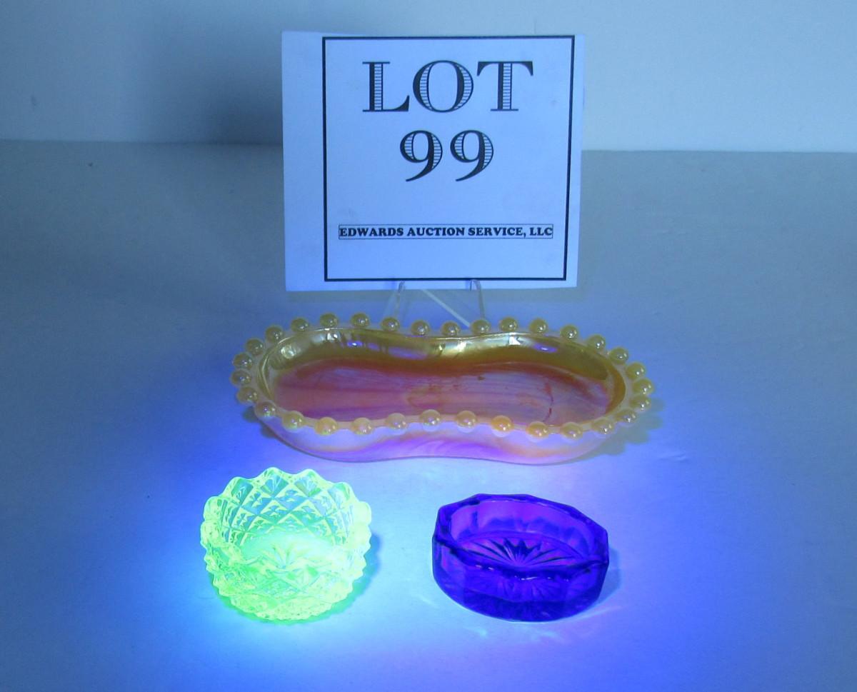 Boyd Glass Candlewick Tray and Mosser Glass Salts, One Vaseline, Glows