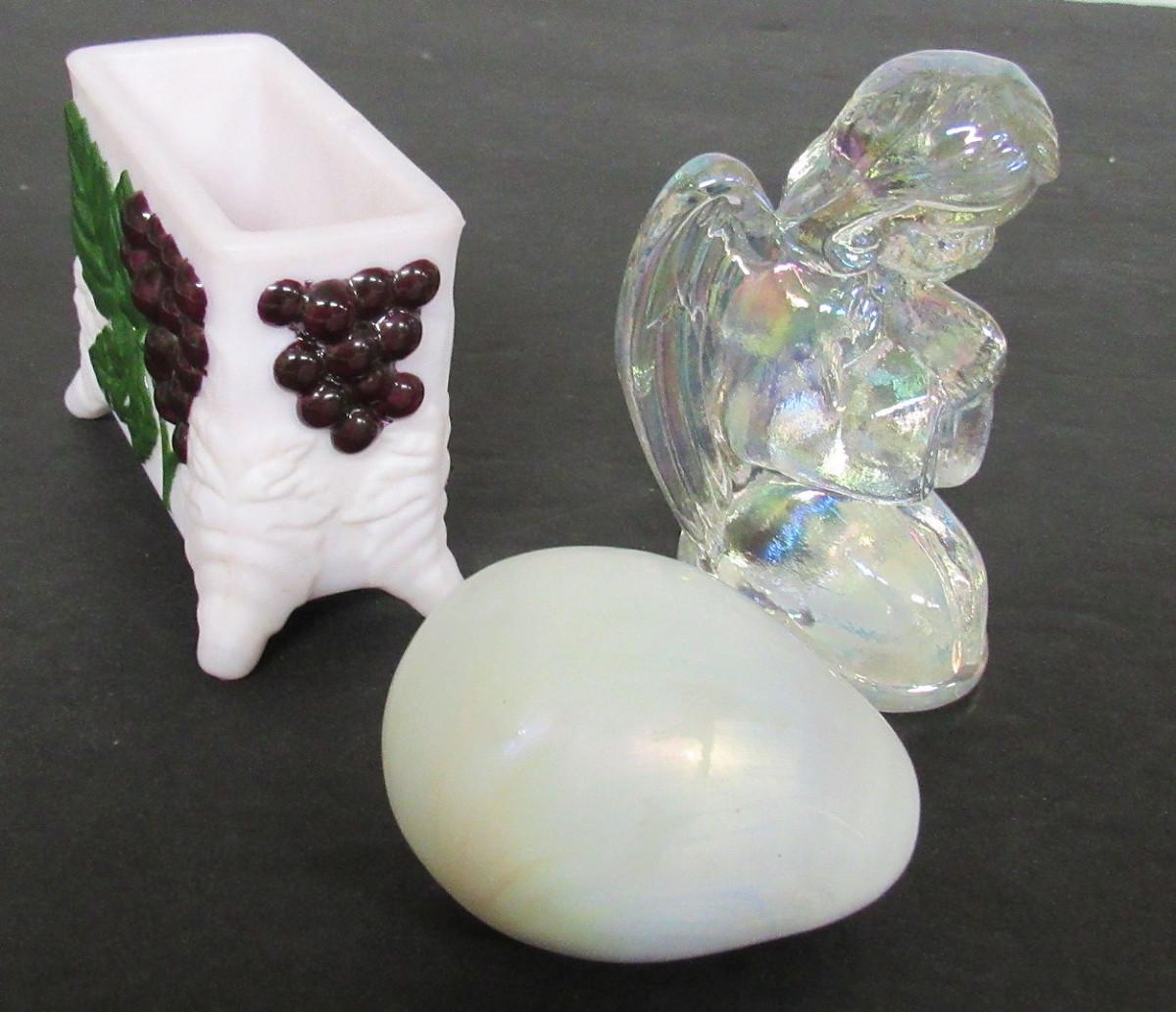 Boyd Glass Cigarette or Toothpick Holder, Boyd Iridized Angel, Gibson Glass Iridized Egg