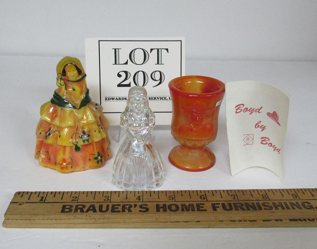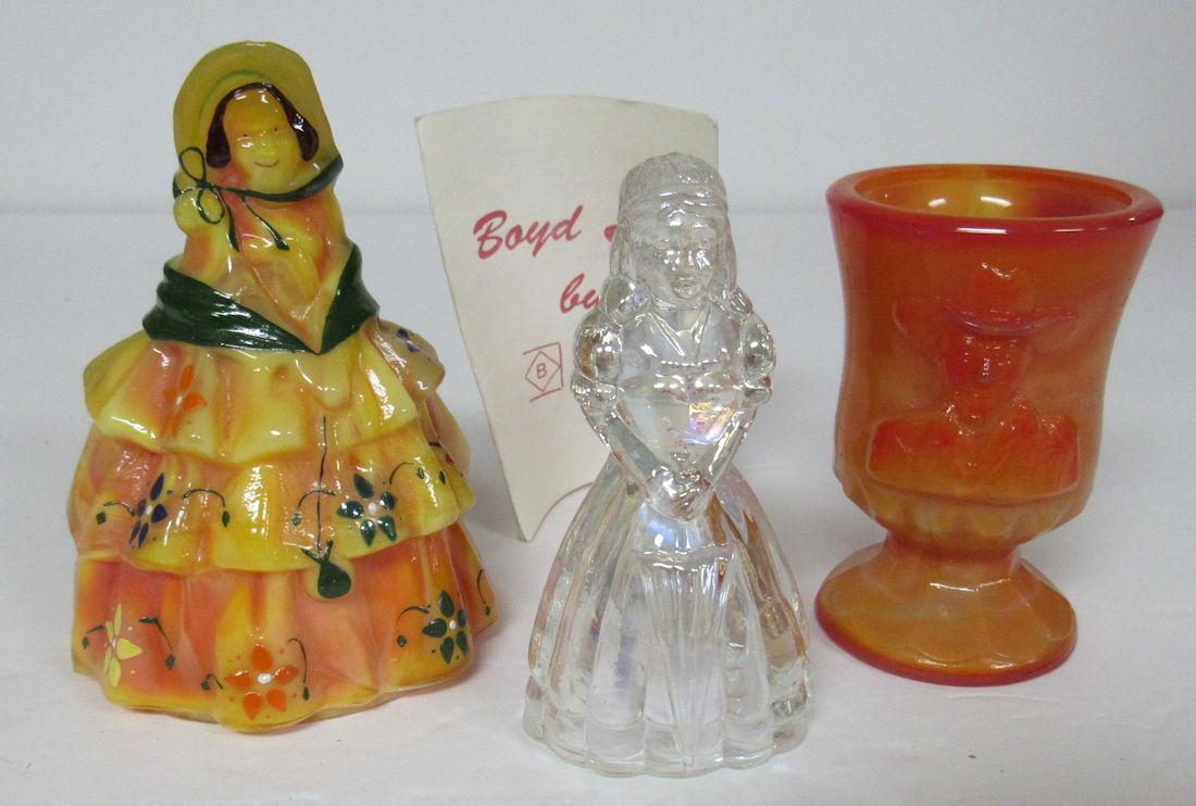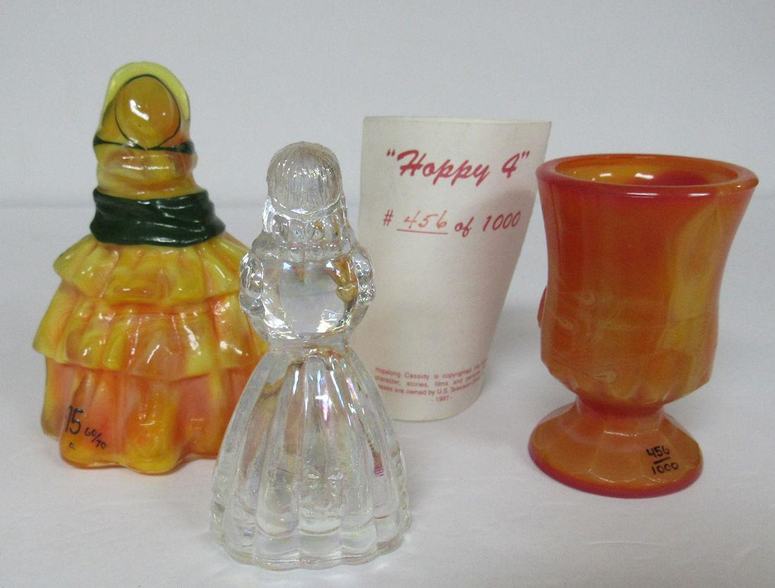 Boyd Glass Hand Painted Louise Figurine #60/70, Iridized Glass Lady Figurine, Hoppy Toothpick Holder #456/1000