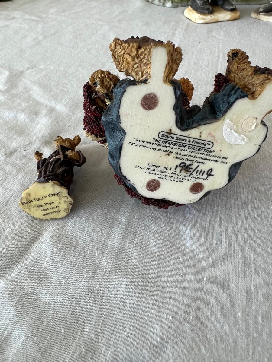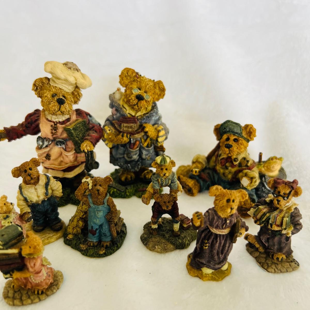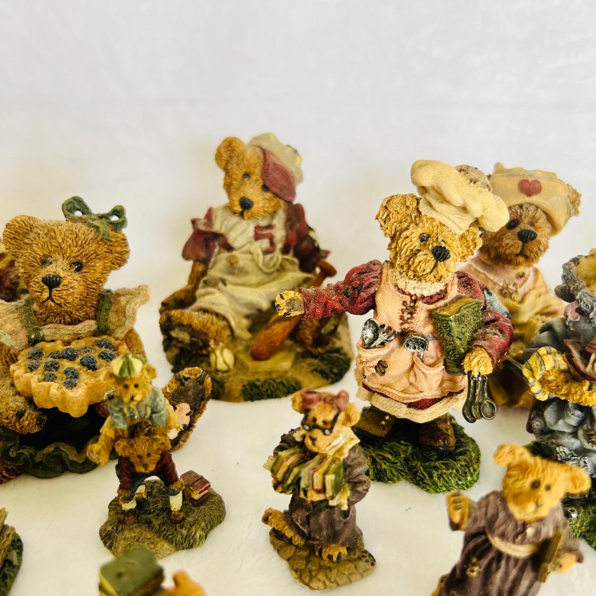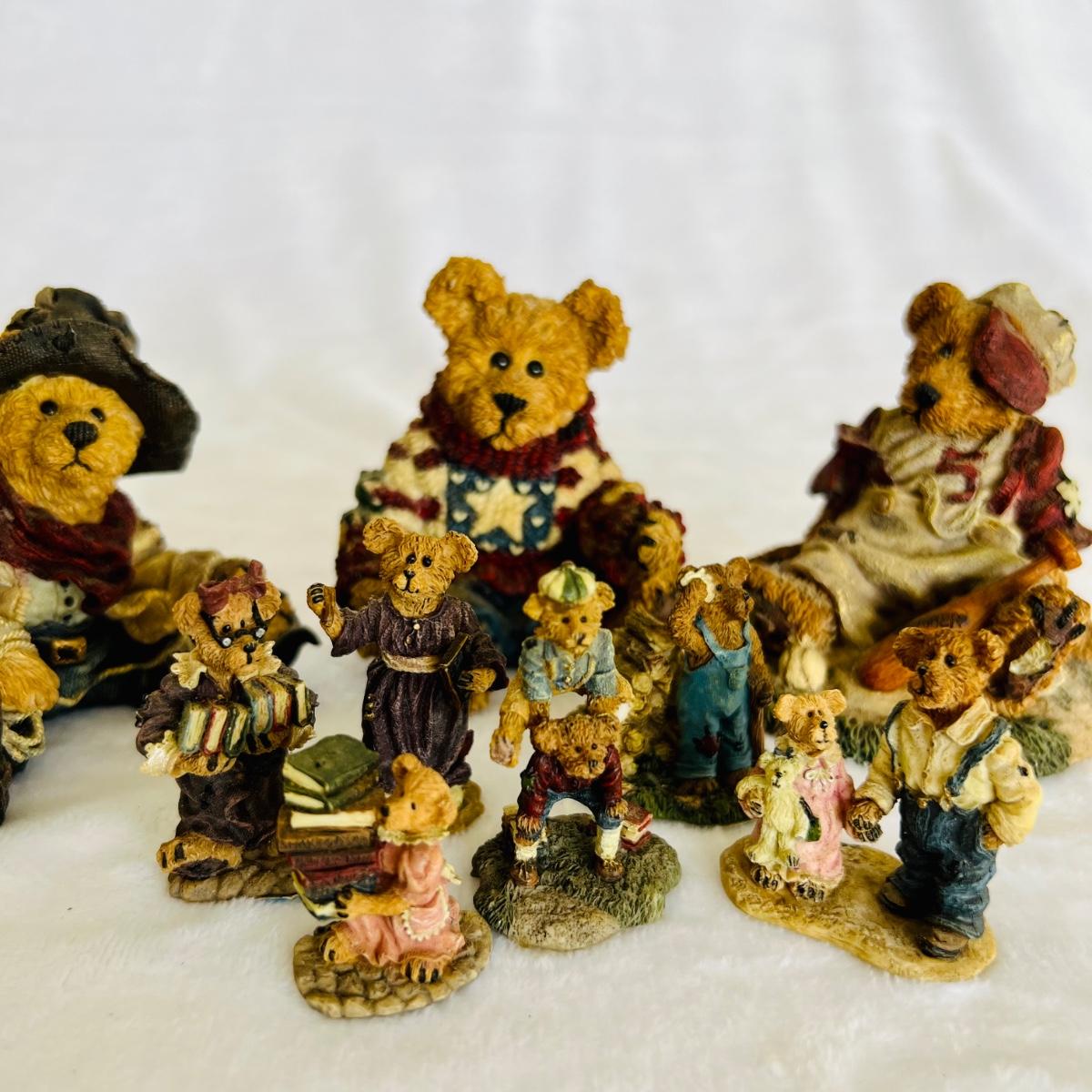 Lot includes 16 Boyds Bears and Friends figurines including six miniature figurines (tallest mini meas. 2”h). Two bears have chipped paws shown in last picture. No boxes.
