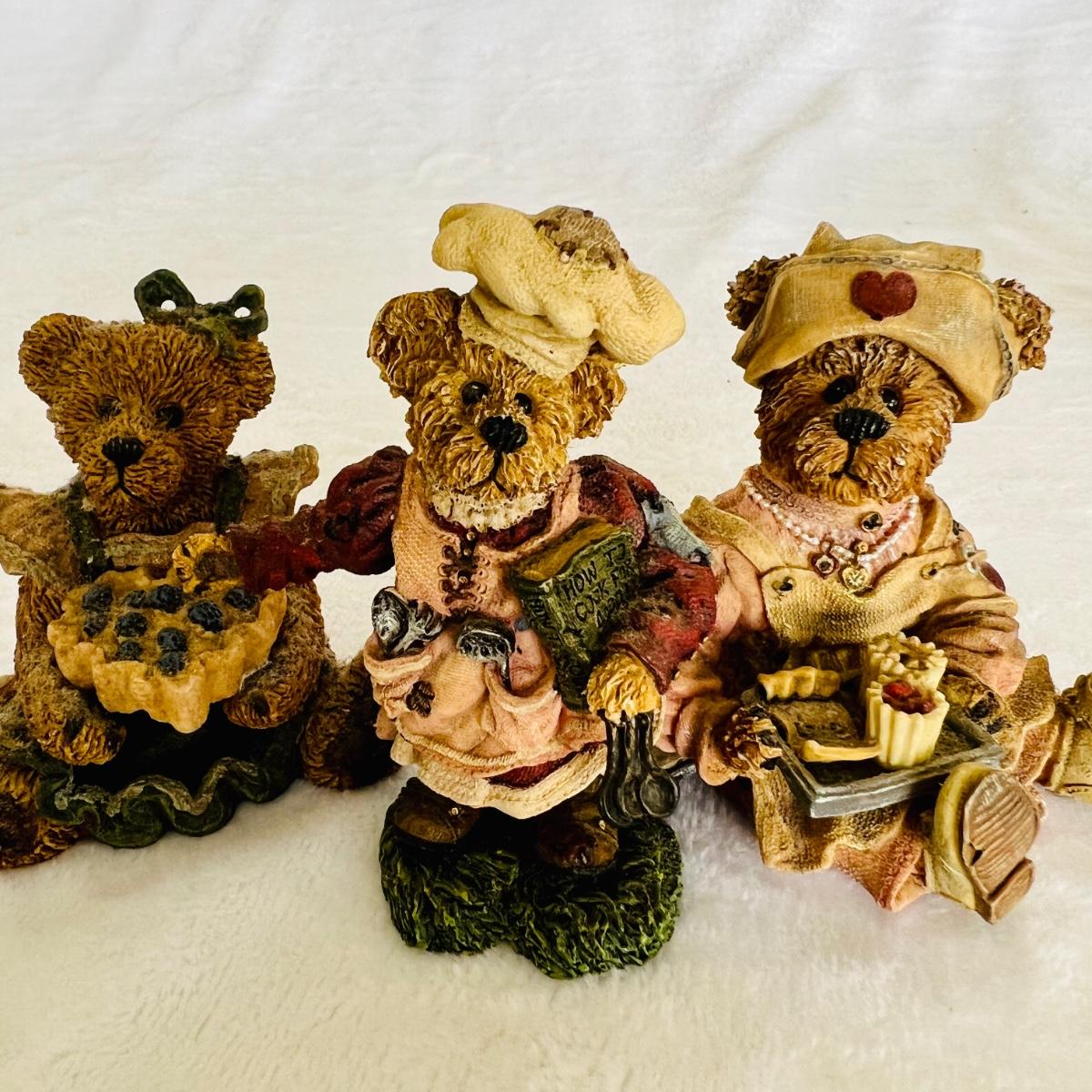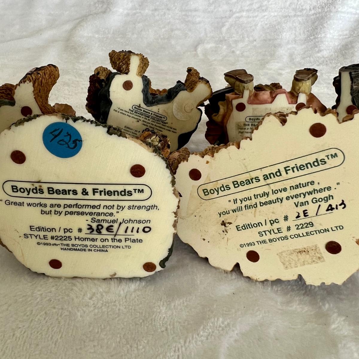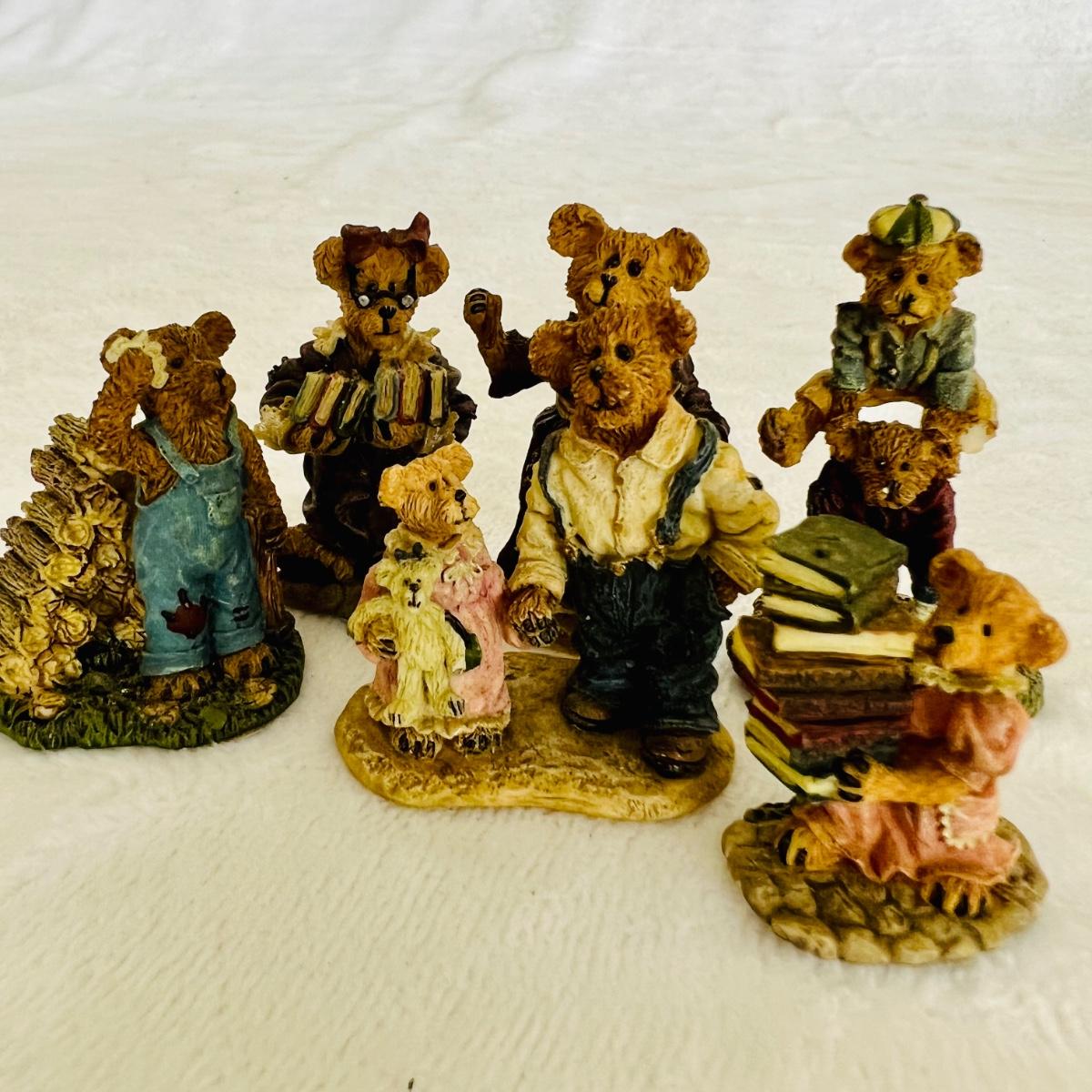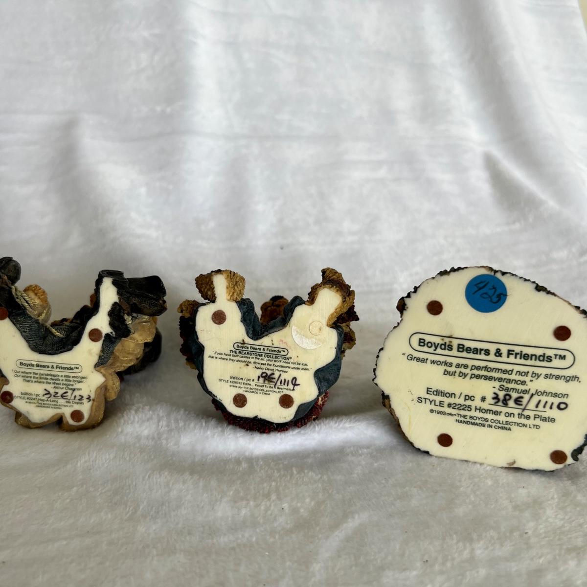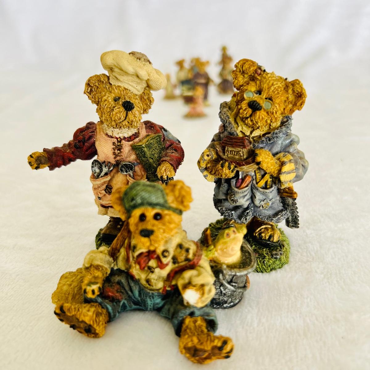 Lot includes 16 Boyds Bears and Friends figurines including six miniature figurines (tallest mini meas. 2”h). Two bears have chipped paws shown in last picture. No boxes.