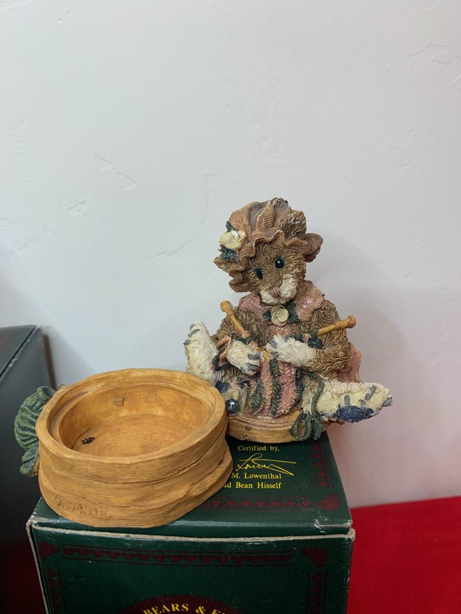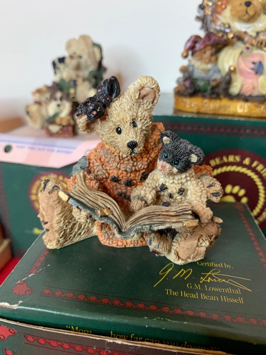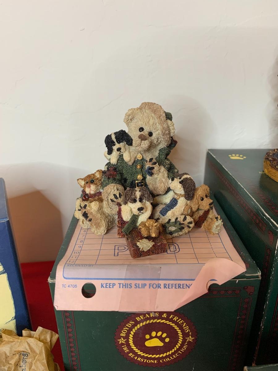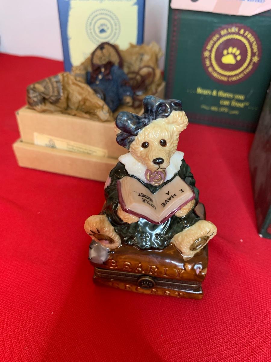 Lot includes 9 resin figurines and one ceramic hinged trinket box. All in excellent condition in original boxes.