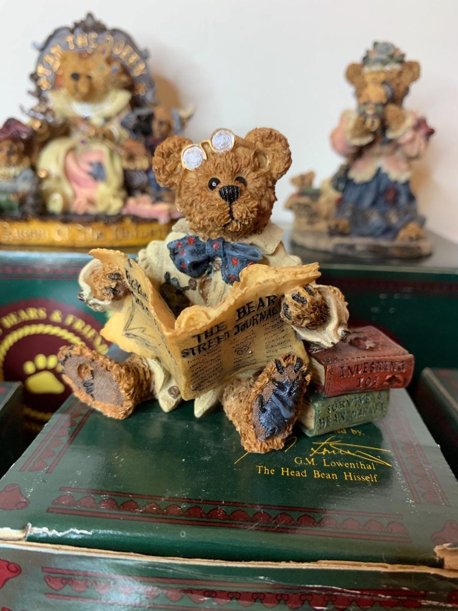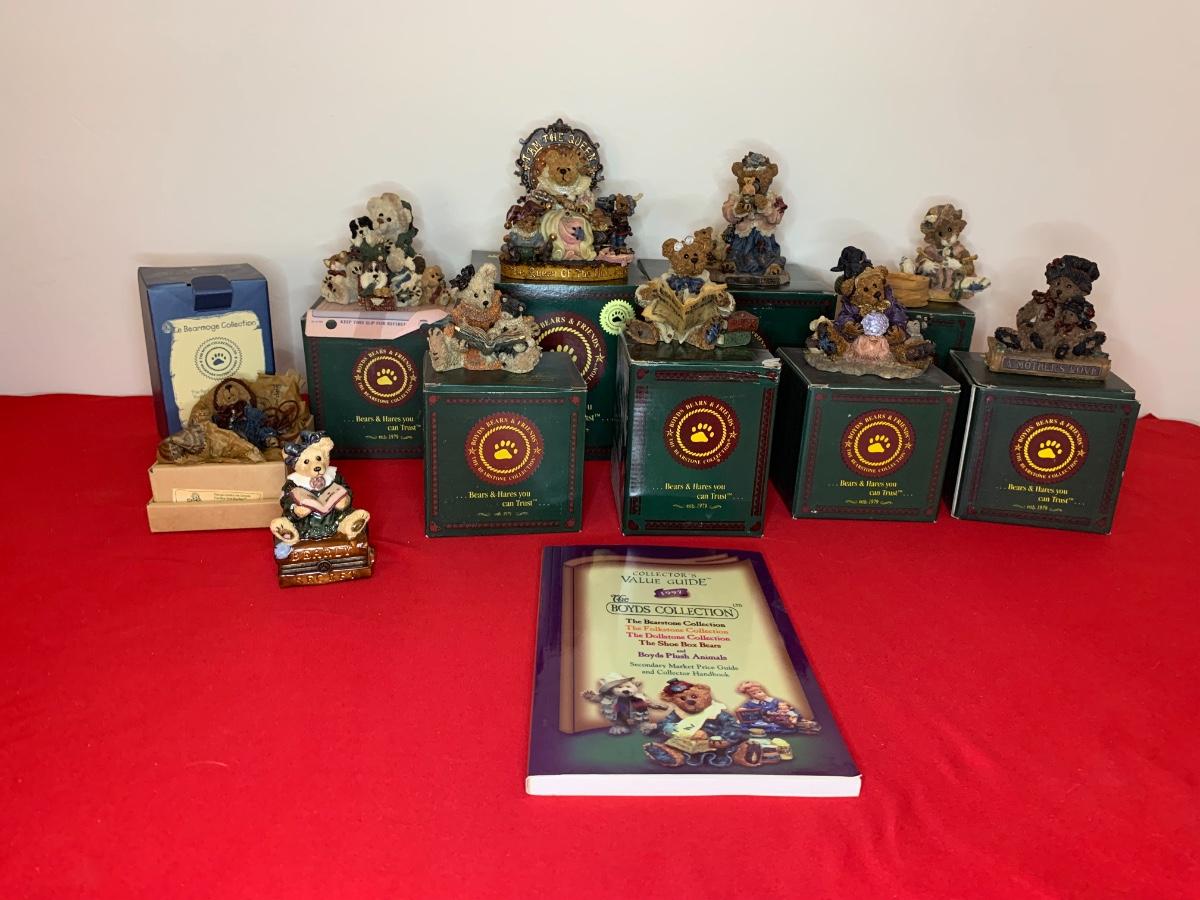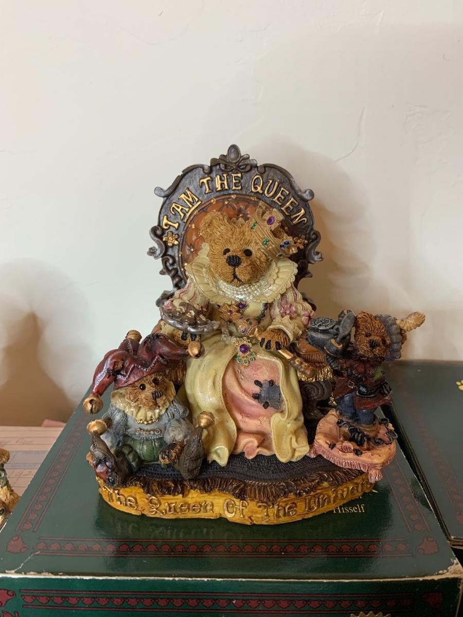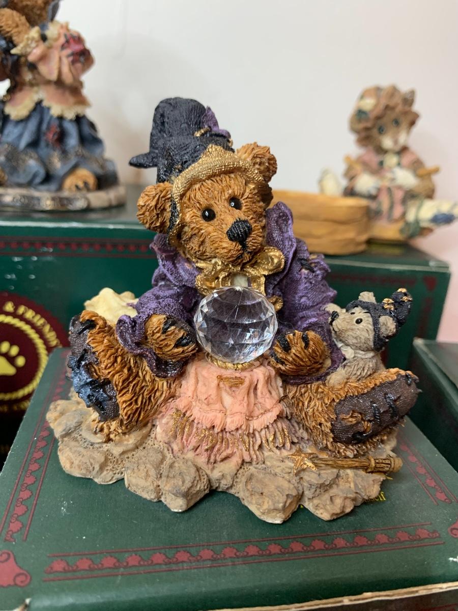Lot includes 9 resin figurines and one ceramic hinged trinket box. All in excellent condition in original boxes.