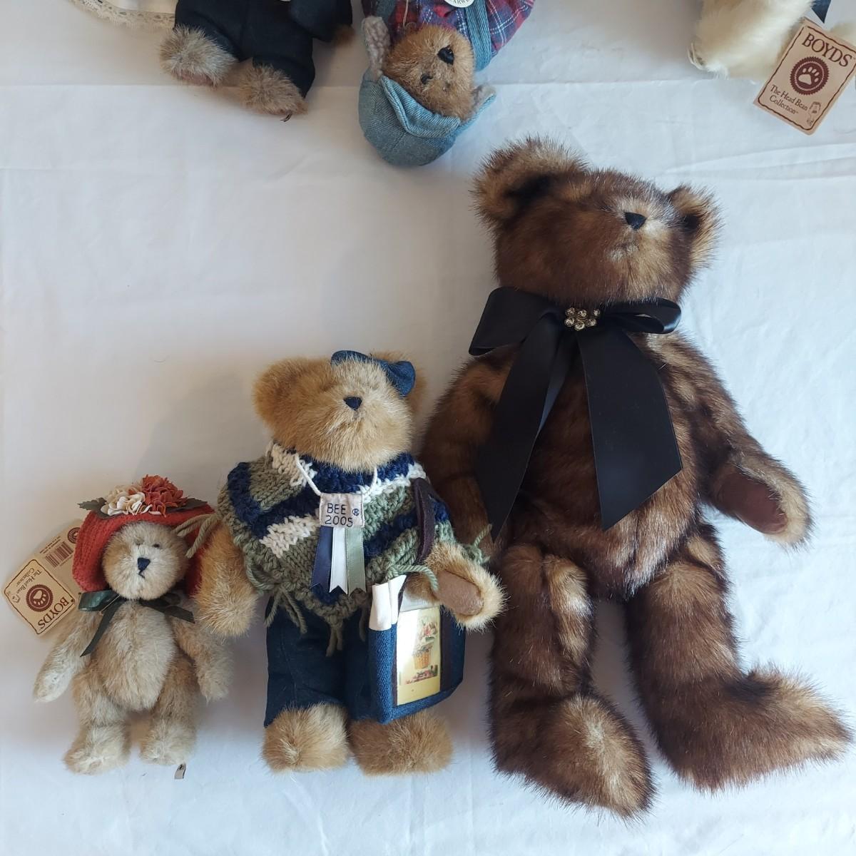 Seven plush bears by The Boyds Collection Ltd. They vary from 7-15” long. One bear included is not Boyds. Please see photos for details. Shipping available