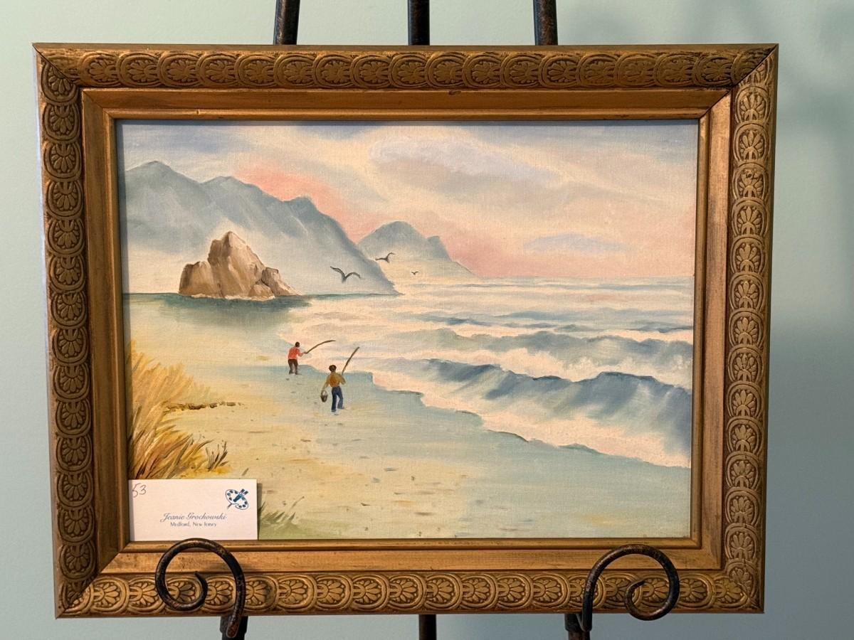 Jeanie Grochowski was a local artist from Medford, New Jersey. She was an accomplished artist, with most of her work showcasing the shore and local South Jersey attractions. Ms. Grochowski studied at the Philadelphia Institute of Art and displayed her work at local community centers and shops. While she preferred watercolors, she did experiment with oil painting and sketching. She began by signing her work Jean and in later years, as her skills became my refined, she signed as Jeanie. Her work is simple yet engaging. She captured snapshots of people and things in everyday life, and had a real knack for vividly bringing out the subjects of her work.
